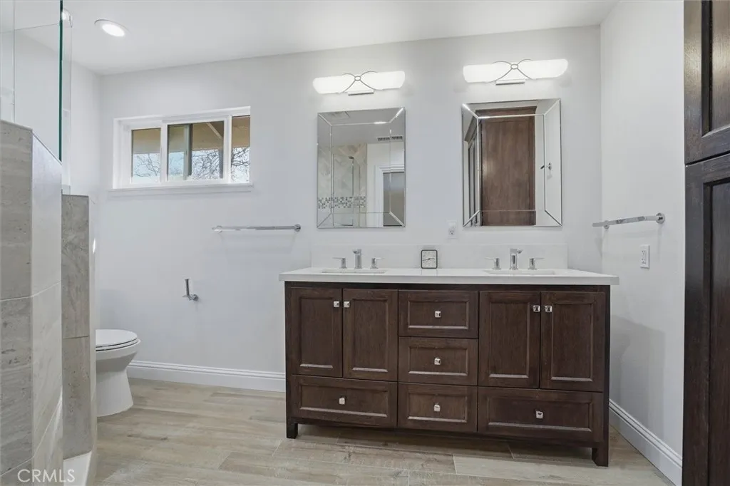 Welcome to this beautifully maintained 4 bedroom, 3 bath home located in the highly desirable Lake Marie Estates. Thoughtfully designed, the main level features a guest bedroom or home office with a 3/4 bath, complemented by beautiful flooring throughout. The remodeled kitchen offers abundant storage and overlooks the expansive backyard—perfect for entertaining or everyday living. Enjoy a formal living and dining room filled with natural light, plus a cozy family room anchored by a stunning stone fireplace. Step outside to an exceptionally large backyard featuring a spacious paved stone patio, grassy area, separate RV parking, and a large detached stick-built shed or potential office. With scenic views and endless possibilities, this backyard is a true blank canvas—ideal for a pool, guest unit, workshop, garden, orchard, or more. Move-in ready and full of opportunity—this home offers space, comfort, and flexibility in one exceptional package.