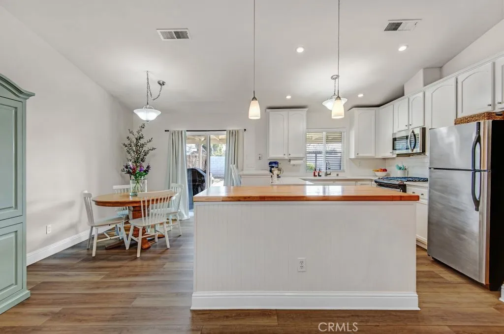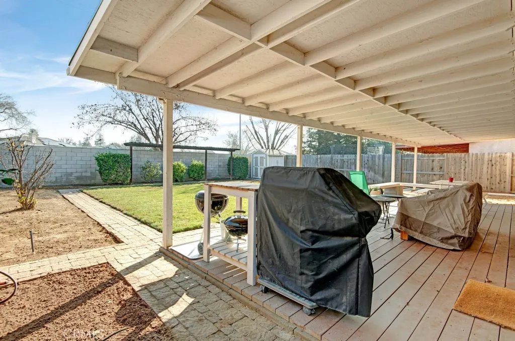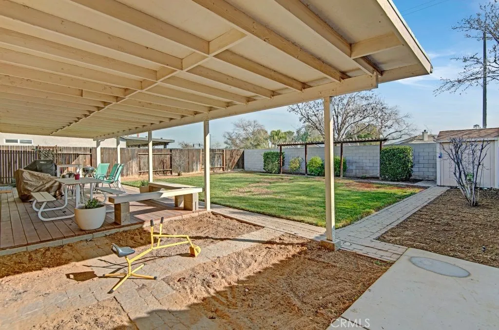 Welcome to this beautifully updated and meticulously maintained 3-bedroom, 2-bath home tucked away in a quiet, family-friendly cul-de-sac in desirable Northwest Bakersfield. From the moment you arrive, it’s clear this home has been thoughtfully cared for and tastefully improved. Step inside to a bright and open living area featuring tall ceilings, a clean modern aesthetic, and updated luxury vinyl plank flooring that enhances both style and durability. The remodeled kitchen is a standout, offering a welcoming breakfast area, butcher block island with additional storage, updated cabinetry, sleek countertops, modern appliances, and an eye-catching backsplash – perfect for everyday living and entertaining alike. Each bedroom is generously sized and showcases plush carpet, spacious closets, and updated light fixtures, creating comfortable and inviting spaces throughout. The primary suite serves as a true retreat with a stylish accent wall and an ensuite bathroom featuring an upgraded oversized soaking tub and a beautifully tiled shower. Step outside to a well-maintained backyard oasis designed for relaxation and gatherings, complete with an extra-large covered patio, clean landscaping, and a convenient storage shed. Additional highlights include a newer water heater, solar screens on front-facing windows, hard-wired automatic night lights throughout the hallway, and a fully finished 2-car garage equipped with a built-in workbench. This move-in-ready home reflects true pride of ownership and offers comfort, functionality, and modern appeal, schedule your private showing today to experience it in person.