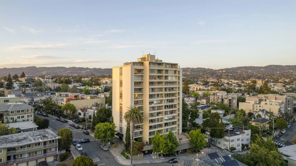 Sunny views in the heart of Adams Point! This sophisticated 4th-floor end unit in the coveted Van Buren Tower sits in the heart of Adams Point with its sweeping views of Lake Merritt, Downtown Oakland, the hills, the Bay, and beyond. Floor-to-ceiling windows in every room fill the home with natural light, while the private balcony offers front-row seats to sunsets, city lights, and peaceful moments above it all. Inside, over 1,000 sq. ft. of well-designed living space awaits. Located in the desirable “05 stack,” the kitchen and breakfast bar open into the living area—ideal for entertaining and everyday living. White oak parquet floors add warmth throughout the space, and the updated kitchen and bathrooms make this home move-in ready. The primary suite includes a private full bath, while the second bedroom and hall bath offer flexibility for guests, a home office, or both. Van Buren Tower offers gated garage parking, secure elevators, app-based laundry, EV charging, bike storage, extra locked storage, outdoor terraces, and a pet-friendly vibe. Just blocks from Whole Foods, Trader Joe’s, Lake Merritt, and Oakland’s best restaurants, cafés, and nightlife—with easy access to BART and major Bay Area routes. Shown by appointment. Views: Downtown