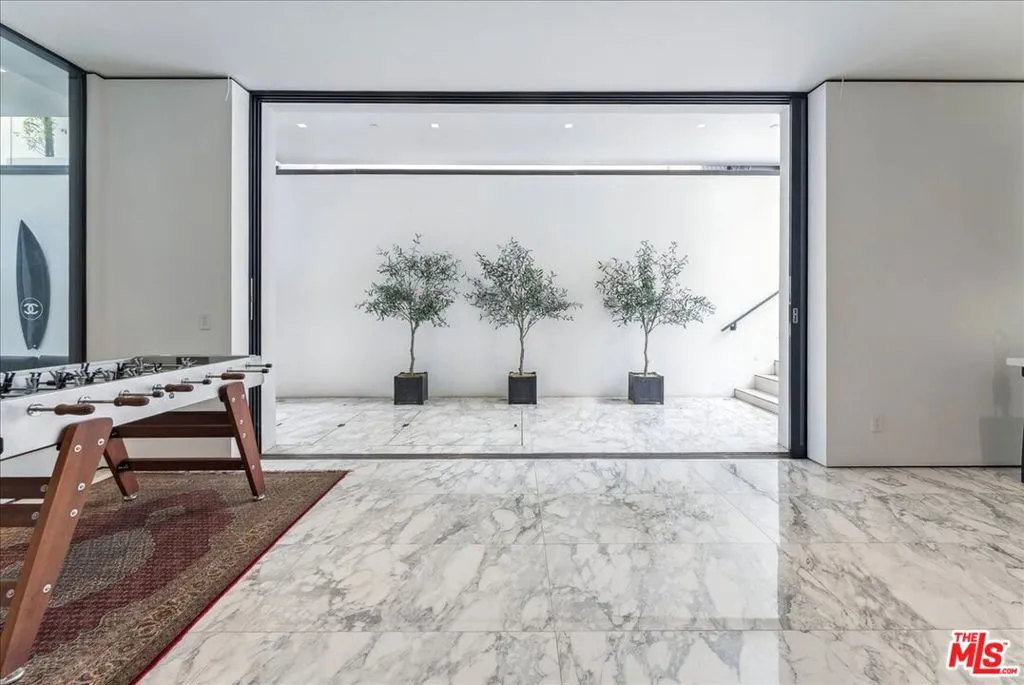 Fully Furnished! Discover this stunning modern estate in Beverly Hills, a privately gated architectural marvel that pairs striking contemporary design with turnkey convenience in one of the world’s most glamorous cities. Immaculately designed and fully furnished by the renowned SIA Architects firm, every detail has been thoughtfully considered to create a seamless blend of beauty and comfort. Behind secure gates, soaring ceilings and expansive Fleetwood sliding doors flood the interiors with natural light, while exquisite custom floors add warmth and refinement. The open floor plan includes a formal dining room and two distinct living areas that extend effortlessly to the pool, barbecue, and outdoor lounge perfect for entertaining or unwinding in style. The gourmet kitchen boasts brand-new Miele appliances, sleek cabinetry, and generous prep space for both casual meals and lavish dinner parties. First-class amenities include a complete camera surveillance network, integrated home alarm system, automated privacy blinds, fireplaces, and comprehensive audio/visual wiring. Dual laundry stations one upstairs and one in the basement add convenience for busy households or extended stays. Upstairs, three bedrooms await, including a luxurious master suite with a spacious walk-in closet, spa-like bath, and private patio. A comfortable upstairs lounge offers flexible space for work or relaxation. The expansive basement spans over 2,000 square feet, featuring a full bar, live pond, movie room, game area, decorative wine display, and a private guest suite. Outdoors, the pool and barbecue lounge invite year-round enjoyment under the California sun, while thoughtful landscaping ensures privacy. Just a short stroll from world-class shopping and dining on Rodeo Drive, this extraordinary residence offers the rare combination of seclusion, sophistication, and proximity.