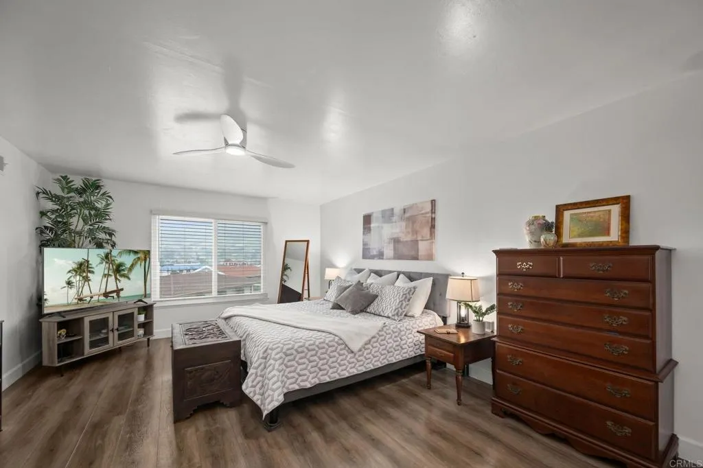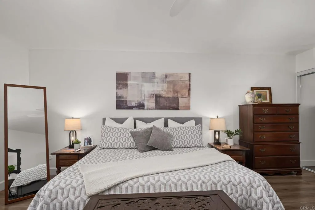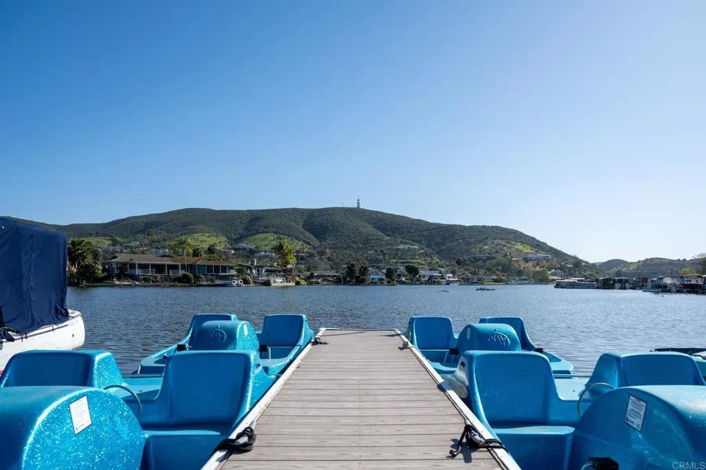 Beautifully maintained second story unit with encompassing expansive panoramic views looking out over the community of Lake San Marcos and the hills beyond. Sun light filled Southern- South East exposure. Light bright and cheery unit with new kitchen cabinets and new Quartz in the kitchen as well as the bathroom. Newly installed flooring by the Garrison Collection Line of durable waterproof Luxury Vinyl Plank laminate flooring throughout the unit. Only one flooring used. Also the HOA approved the padding noise barrier respecting residence below. Brand new Milgard Tuscany sequence windows including 3 panel sliding balcony door. Unit has AC. The unit offers a very generous social SF and bedroom SF. His and her closets. Bedroom large enough for a work space and or sitting area. Large storage room and double tandem carport parking. Walk to all the lake amenities: restaurants, pickle ball, pool club house or enjoy the health of walking through this wonderful and friendly community. Ideal living close to shopping and schools.
