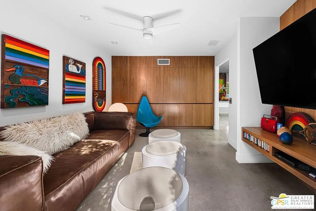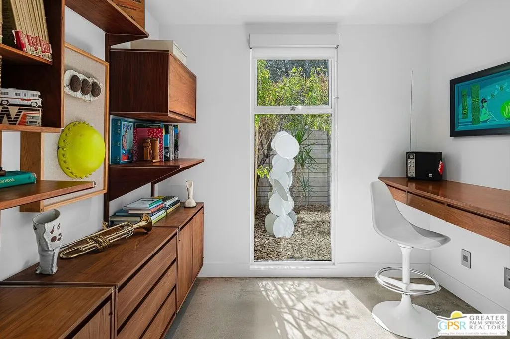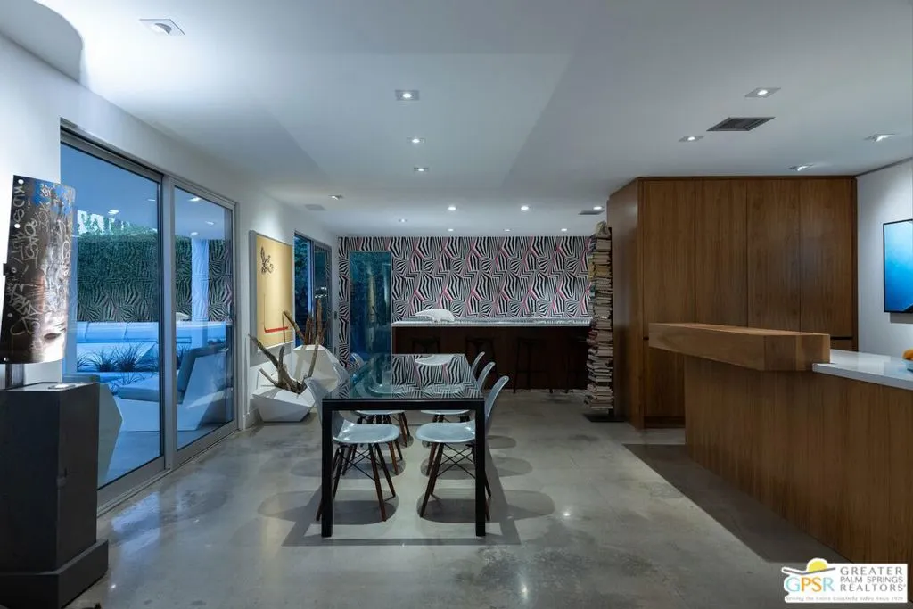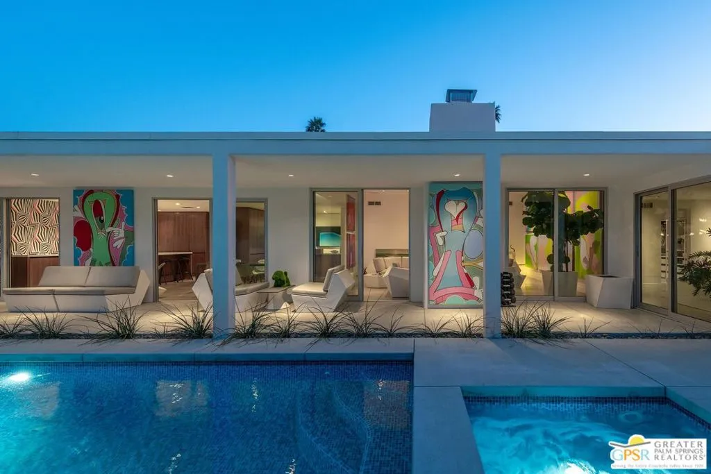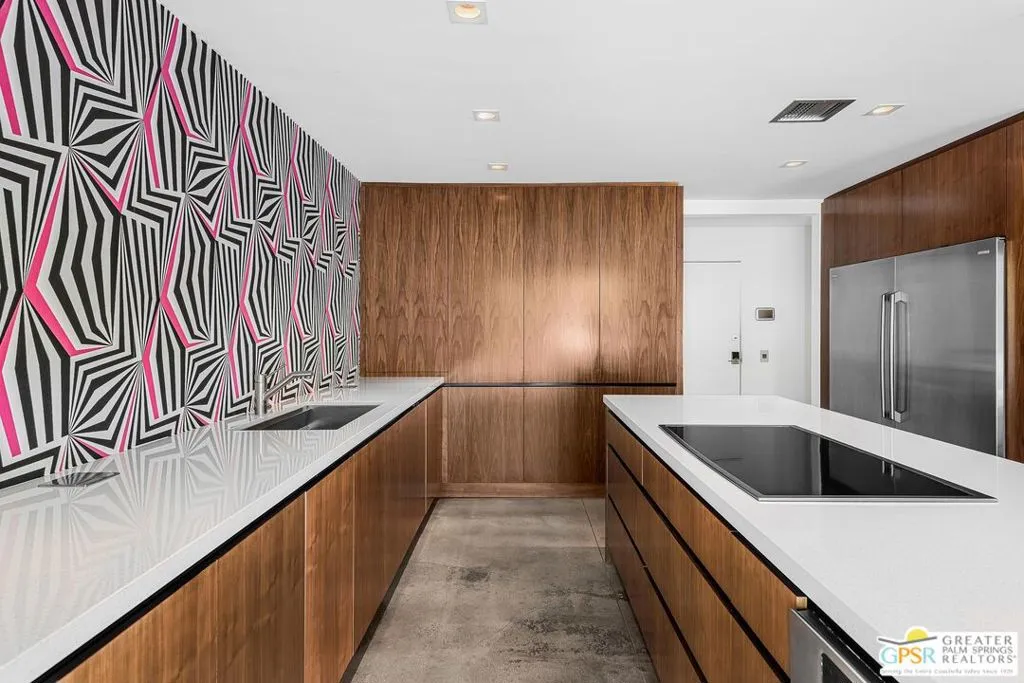 Architecturally significant, AIA award-winning Kenneth David Lee partnered with notable Palm Springs builder John Caranci executing this modern home in coveted Indian Canyons. Gallery-like interiors with polished concrete floors, bespoke walnut cabinetry, high-end modern finishes, and abundant built-in storage. Chef’s kitchen features massive refrigeration/freezer, induction cooktop, and a large entertainer’s bar with secondary refrigeration and wine storage. Stunning bathrooms include a primary suite with oversized steam shower and generous outdoor garden shower. Exceptionally private yard with a striking all-glass mosaic tile pool and spa, surrounded by mature landscaping. Owned solar with three backup batteries, whole-house water filtration, and thoughtfully updated systems throughout. Adjacent to world-class golf and endless hiking trails.