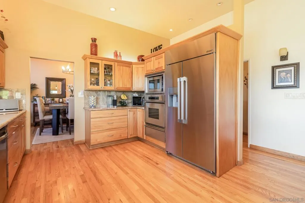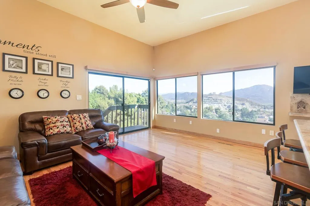 Welcome to this Beautiful Mt Helix home with city lights and Mountain views. Nestled on the view side of a quiet cul-de-sac, this impressive 4,700 sqft home offers a harmonious blend of elegance and comfort. With 5 bedrooms, 3 1/2 bathrooms and a versatile office space, it’s perfect for modern living. The lush .63-acre lot provides ample room for outdoor enjoyment, including: Sparkling Pool and Spa: Imagine relaxing in your private oasis, surrounded by palm trees and sunshine. Family-Sized Citrus Orchard: Enjoy fresh fruit right from your backyard. Easy-Care Landscape: Low maintenance, so you can savor the views. The home’s thoughtful design includes an attached granny flat/ ADU with its own private entry, allowing for flexible living arrangements. Plus, there’s room to build an ADU (Accessory Dwelling Unit) on this sprawling property. Don’t miss this opportunity to own a piece of El Cajon paradise. Bathrooms: Recently renovated, the bathrooms now feature sleek modern fixtures, custom tile work, and spa-like amenities. Flooring: The home boasts new hardwood flooring, creating a seamless flow from room to room. Whether you’re entertaining guests or enjoying quiet family time, the elegant flooring adds warmth and sophistication. This home is a true gem, combining comfort, style, and functionality.