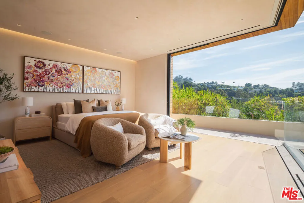 Arguably the best value in Trousdale (Beverly Hills proper). Acclaimed Noah Walker architectural in Beverly Hills. A true masterpiece of modern design surrounded by nature while perfectly integrating luxury with tranquility. Set against the backdrop of the coveted Trousdale Estates, the residence offers head on city views of the Los Angeles skyline and ocean views of the Pacific. This immaculate home features expansive open-concept living spaces and floor-to-ceiling windows flooding the interiors with ample natural light and creates a seamless indoor-outdoor flow. Beautiful minimalist design, warm finishes and thoughtfully curated materials effortlessly blend throughout the home. Only a few in Trousdale are this polished for the most discerning. 5th bedroom currently used and functioning as a study.
