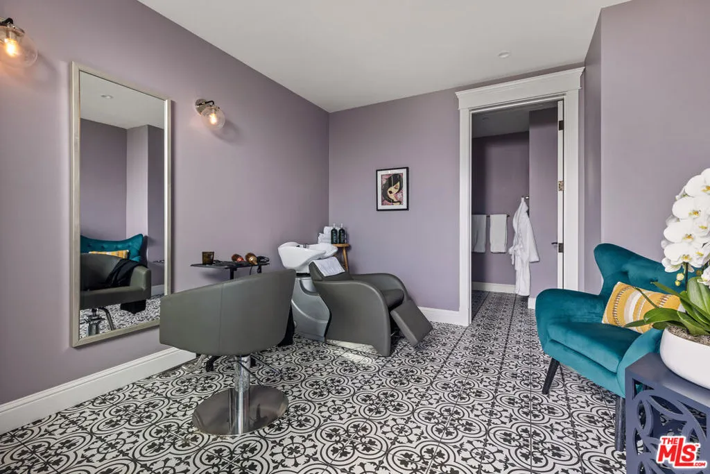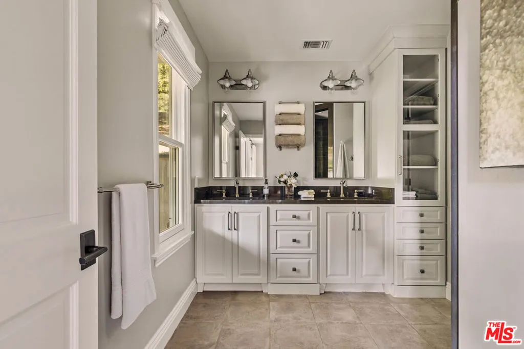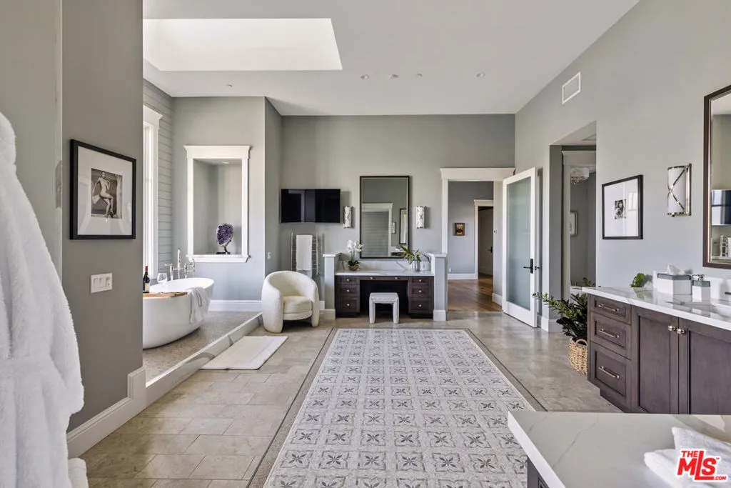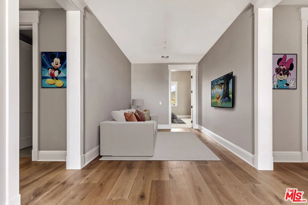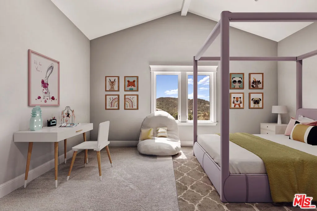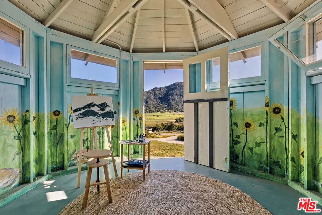 1697 Potrero Road and its breath-taking views sits behind twin, dove-white, four-rail fencing. Beyond its gated entrance lies a private lane that meanders its way uphill. Bordered by beds of wild flowers, clusters of lavender, pockets of iris and bursts of crimson bottlebrush, this is a journey that celebrates flora and fauna. At its summit, the lane opens onto a dramatic courtyard, with breath-taking, sweeping views. One of the newest homes in prestigious Hidden Valley, this is a grand and unique hybrid of traditional Cape Cod architecture and contemporary Californian lifestyle. The path to the front door is flanked by a car collector’s garage-cum-gallery and a vista-framing car port. With ceilings that reach 29ft, and a view upon entry from one end to the other, the scale of this house is magnificent. Pass the owner’s study, and enter the open plan great room, finding the dining area to the right and living room to the left. With pillared, vaulted ceilings, an abundance of natural light, the coziness of a roaring fire, as well as retracting glass doors to an external dining area, this is a home that offers indoor-outdoor living without constraint, and that can be formal or familial, and everything in between. The family room features a chef’s kitchen, top-of-the-range appliances, peninsula high-top seating, lounge area, fireplace, under those same soaring ceilings, and it (and the games room) boasts pocket glass doors that stand 10ft high. These retracting walls of glass offer phenomenal views over the valley and Santa Monica mountains ahead, and provide direct access to the vast outdoor entertaining areas and gardens. This covered patio features a full working kitchen, barbecue, wet bar, island, and fire pit. Beyond the family room is a games and entertaining room, with multiple televisions, arcade games, ample space for ping-pong or pool, also offering unparalleled views of sunsets, rolling hills, and the gardens, mountain ranges and estates below. The bright and spacious primary suite offers equally primary views, a lounge and bar area, luxurious spa-like bathroom, gym, walk-in closet, and its own laundry. With a private terrace off the main bedroom, perfect for sunrise breakfasts, this is a suite to behold. The two story, west wing features five further bedrooms, four en-suite, two lounge areas, a kitchenette, terrace, and direct access to the rear garden and volleyball/badminton green. The main house features a salon, laundry, and walk-in pantry, as well as a guest’s powder room. The landscaped gardens are as adept at offering a place to relax and admire the views, as they are at hosting a game of croquet, boules, or even for some decompressing yoga overlooking the neighboring vineyard. En route to the guest house, sits the repurposed bull-pen. This charming, octagonal structure, with its own distinct vantage point and abundance of natural light, is currently used as an artist’s studio. The guest house has been constructed, equipped, and decorated to the same exacting standards as the main house. The house features the blue stone, architectural details, soaring ceilings, and feel of the main house, yet delights in a very different setting, nestled amongst the trees. The 1,789sq ft guest house features one main entertaining room, a galley kitchen, two en-suite bedrooms, and one further bathroom; as well as a covered, outdoor kitchen, barbecue, lounge and dining area, measuring approximately 1,000sq ft. The guest house’s landscaped rear garden leads to fully rebuilt and beautifully restored stables. Offering a reception room, tack room, hay loft, and five stalls, these exquisite stables would bring a smile to the face of any equine enthusiast. This magical estate is like no other: unique in its architectural magnificence; privileged in its elevated vantage point; maximizing the use of its uninterrupted 360 degree, sweeping views; impeccable in its design, construction, and landscaping; and a rarity being such a new home.