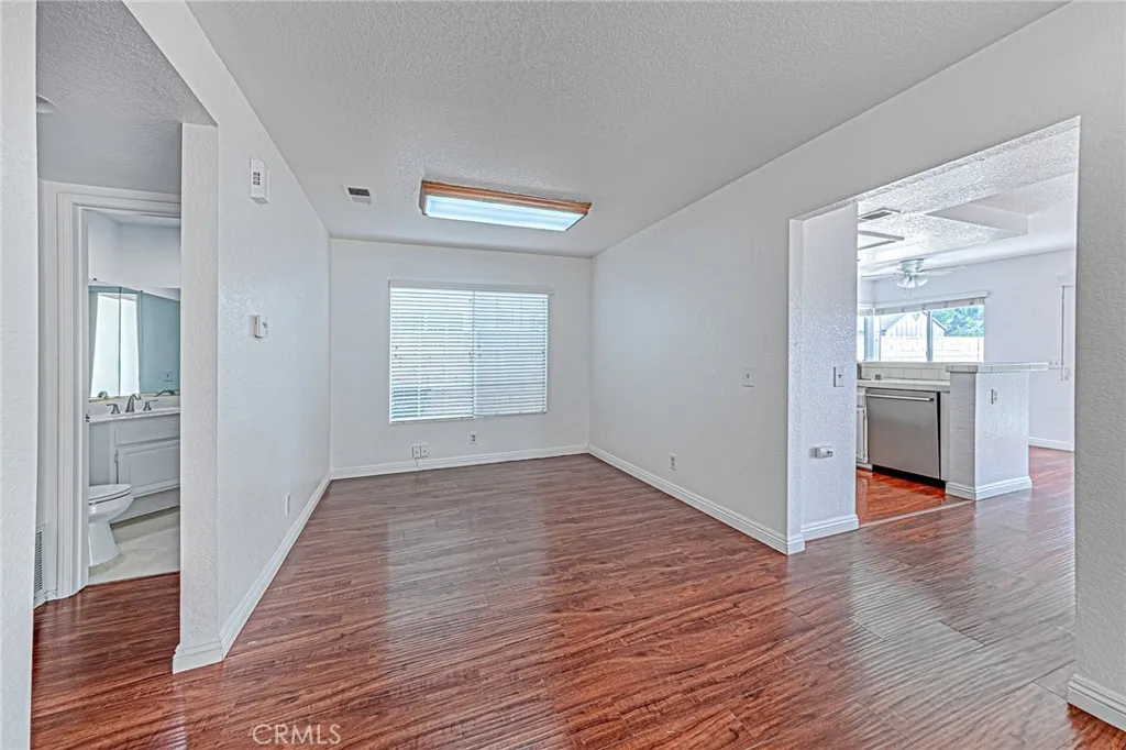 Entry leads to the living room and separate dining area, the living room has dramatic high ceilings with lots of natural lighting. Newer laminated floorings throughout.