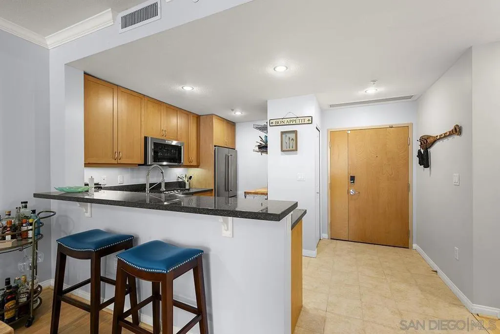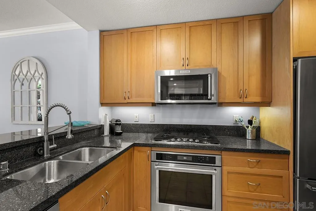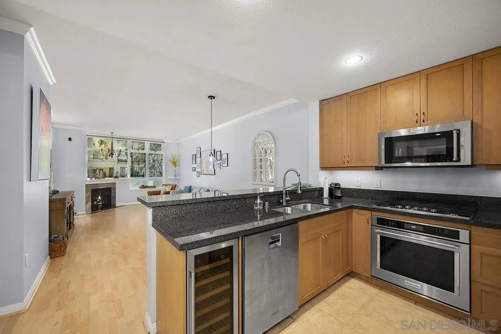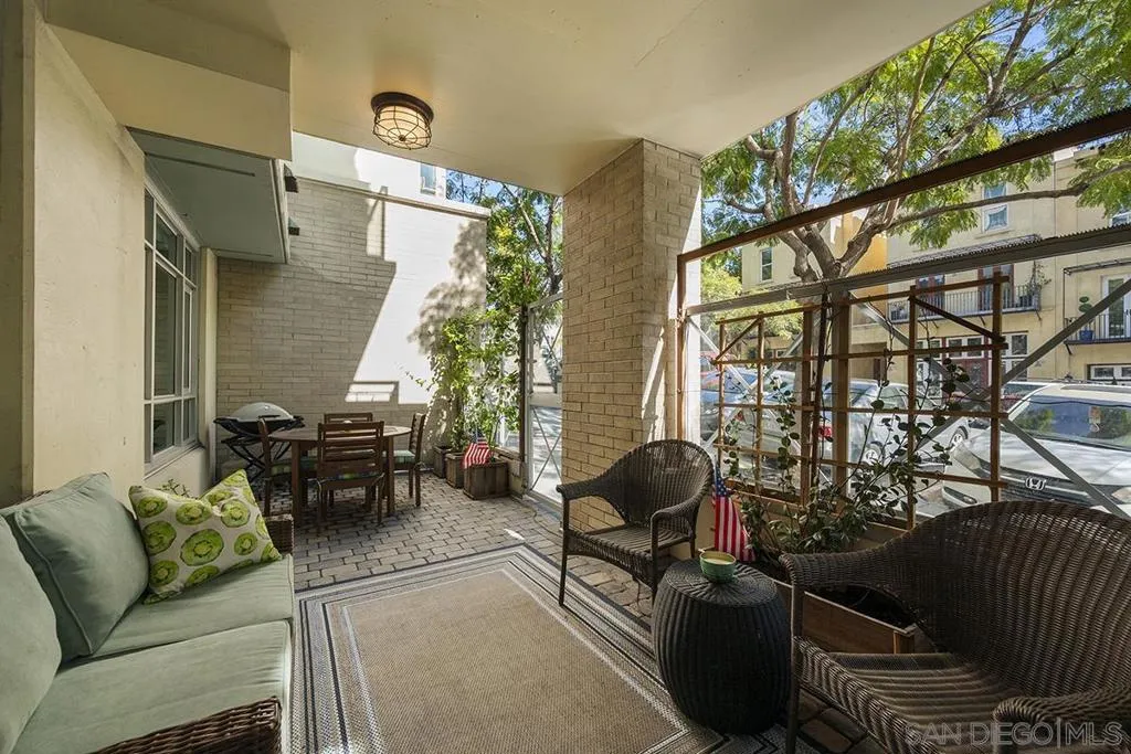 This gorgeous ground-level 2 bedroom, 2 bath residence at Discovery offers the perfect balance of being close to the action, yet removed from the noise and hustle-bustle. Beautifully maintained and truly move-in ready, it stands apart with a private street entrance on 9th Avenue with an oversized enclosed terrace, ideal for relaxing, entertaining, or letting furry companions enjoy the outdoors. Located in Cortez Hill, one of Downtown San Diego’s most charming and peaceful neighborhoods, you’ll enjoy a quieter, community-oriented setting while remaining close to everything the city has to offer. Inside, features include a warming fireplace, laminate wood flooring, fresh paint, and crown molding. The kitchen is equipped with upgraded KitchenAid stainless appliances, wine fridge, recessed lighting, ample cabinetry, kitchen organization station with open shelving, and an eat-at bar. The primary suite offers an organized walk-in closet and ensuite bath. Additional highlights include interior building access, a private storage space down the hall, and the convenience of street-level living. Discover why Discovery and Cortez Hill are among Downtown San Diego’s best-kept secrets. Discovery offers resort-style living in one of Downtown San Diego’s most charming and established neighborhoods, Cortez Hill! Residents enjoy secure underground parking, 24-hour concierge service, an elegant lobby, and thoughtfully designed shared spaces including the lush 2nd-floor Fern Grotto Garden and a stylish social lounge. The business center is equipped with commercial-grade office tools, and the 10th-floor rooftop deck features a heated lap pool, cabanas, spa, BBQ grills, and panoramic city views. A top-tier fitness center includes a sauna and steam room for full wellness access. Just steps away are local favorites like Tweet Street Park and with Little Italy and Balboa Park within walking distance. Plus, enjoy quick freeway access to I-5 and Hwy 163 from this peaceful urban retreat.