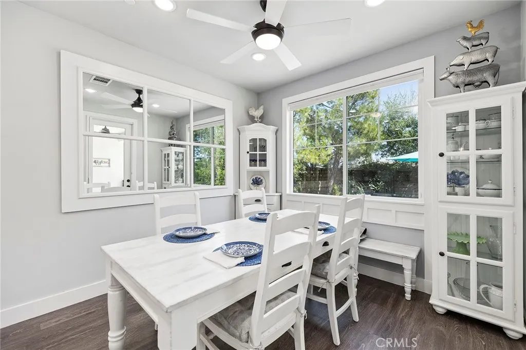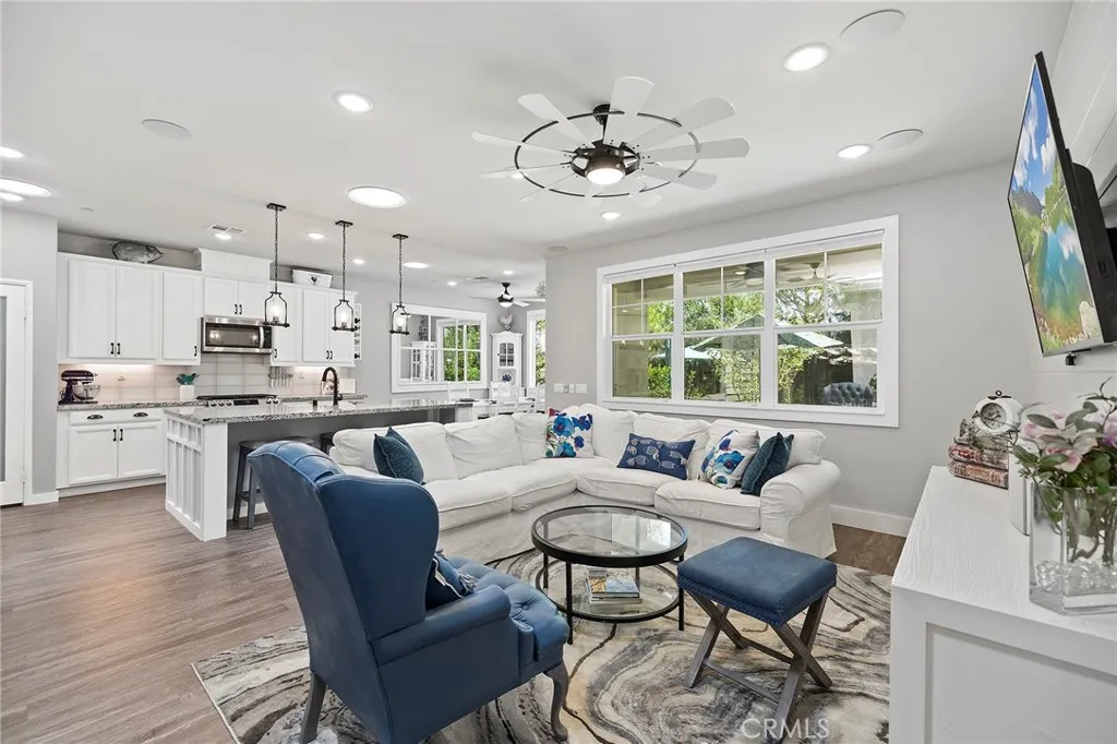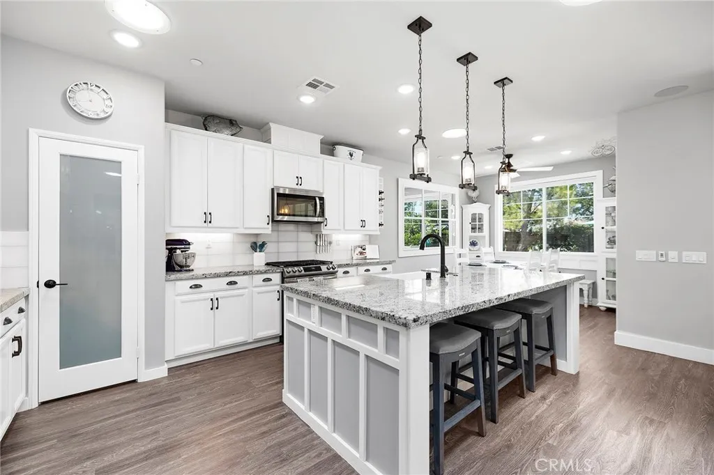 HUMMINGBIRD COTTAGE: Stunning, FORMER MODEL home in the #1 neighborhood of Audie Murphy Ranch in fast-growing Menifee, CA! This home is a RETREAT from the stresses of work, business travel or an over-active social calendar! Close to the many The Ranch HOA amenities, like pool, spa. parks & sports courts, the new owners (you) are called to the city BIKE PATH one block away, which gives access to the new Menifee Town Center, Canyon Lake or the Countryside Marketplace. As you enter the home from the friendly, small cul-de-sac you experience the SHADY foliage and a comfy front porch with BEAUTIFUL front entrance door! The striking, highly upgraded interior greets you with a wide hallway, high ceilings & natural light provided by the 8 SOLATUBES leading you past the front guest bedroom, music room, office, laundry and mud room & the half bath. You notice the details of the beautiful upgraded door frames, the barn doors, the LPV flooring & the built-ins. All of the colors, interior designer paint & fabrics blend together to make you feel you’re in a relaxed ART GALLERY! An OPEN CONCEPT great room beckons to you at the end of the hallway with CHEF’S KITCHEN, Dining area & family room combined together, with lots of NATURE beaming in from the backyard. Last but not least, the Primary Suite is accessed from the south side of the room, & opens to a LARGE SPACE with en suite bathroom separated by barn door, & featuring a soaker tub with adjacent shower, plus an ample walk-in closet with built-in dressing area. Your backyard features California Room, lots of trees and shrubbery & lots of privacy, plus a connection via sideyard to the front yard for your pups. Eight paid off solar panels & an upgraded 3rd car tandem garage complete the features of this GORGEOUS home. Come see today!