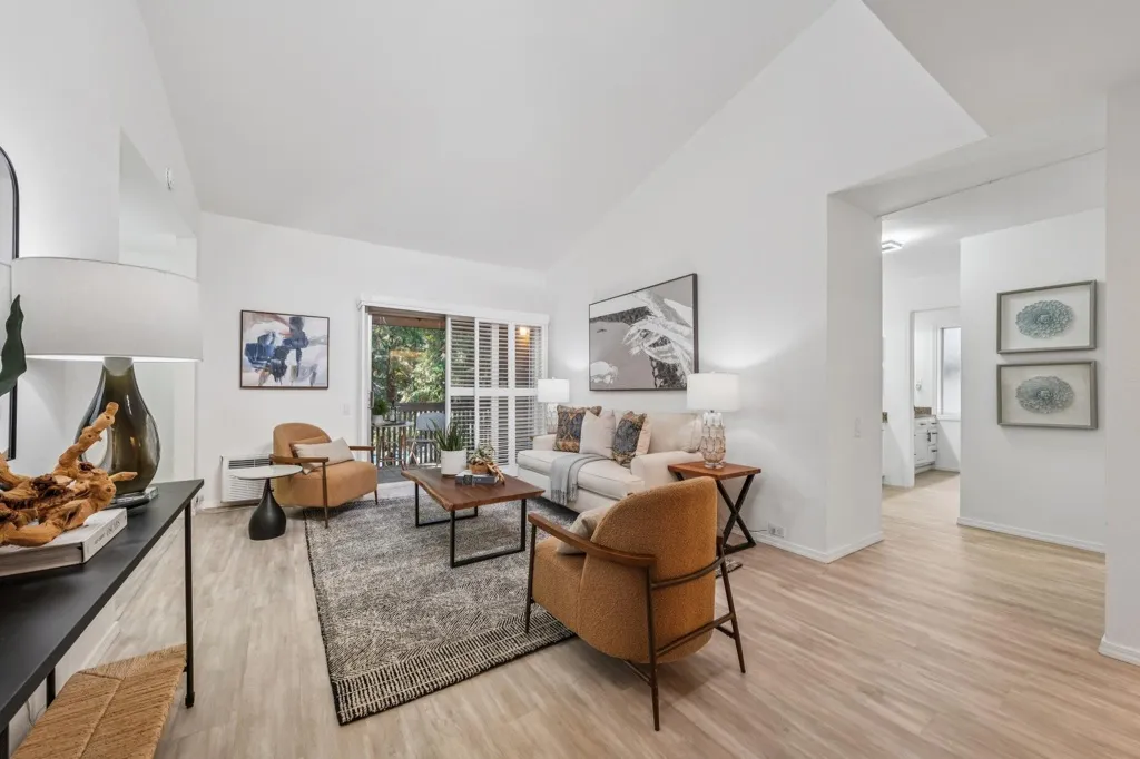 Welcome home to this beautifully updated third-floor end unit featuring vaulted ceilings and floor to ceiling windows for an abundance of natural light. As the largest 2-bedroom, 1-bath floor plan in the complex, this home offers an ideal blend of space, comfort, and style. New flooring throughout, brand-new carpet, fresh interior paint, and updated fixtures and hardware create a move-in-ready feel. The modern kitchen features stainless steel appliances, including a new refrigerator and dishwasher, plus a convenient pantry for extra storage. Just off the main living area, a charming reading nook provides the perfect space for a work-from-home setup or study area. Step outside to your private balcony and enjoy peaceful views of the surrounding redwoods. The community offers resort-style amenities, including multiple pools, a billiards room, and a fully equipped fitness center. Located just steps from vibrant downtown Walnut Creek, with easy access to major highways and top-rated schools, this home delivers exceptional convenience and lifestyle!