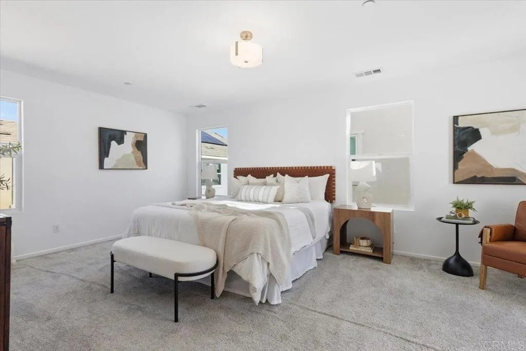 Welcome to this modern 4-bed, 3-bath home in the heart of Valley Center, offering a bright open floorplan designed for comfort and easy living. The spacious kitchen is a true centerpiece, featuring a large island that flows seamlessly into the main living areas—perfect for entertaining or everyday gatherings. A convenient downstairs bedroom and full bathroom add flexibility for guests, multigenerational living, or a home office. Enjoy the benefits of 16 solar panels with a current $0 energy bill, providing exceptional energy efficiency and long-term savings. The backyard is an inviting retreat with thoughtful landscaping, a pergola with retractable shades for year-round enjoyment and a brand-new HOA-approved tool shed included with the sale. Additional upgrades include built-in garage shelving for extra storage and a built-in ironing board in the laundry room for convenience. Ideally located just across the street and less than 5 minutes from Native Oaks Golf Course, this home also offers easy access to local amenities, schools and parks. Solar is owned but financed (seller willing to pay off with the right offer), making this a fantastic opportunity to own a stylish, energy-efficient home in a prime Valley Center location.