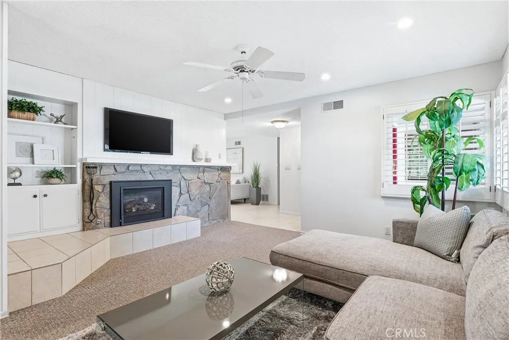 In the heart of Yorba Linda, tucked away on a quiet street just steps from highly rated schools, parks, golf courses, and shopping, this beautifully maintained ranch-style home offers thoughtfully designed living in one of the area’s most sought-after, family-friendly neighborhoods. From the inviting double-door entry to the manicured lawn and garden beds, the home radiates timeless curb appeal and classic charm. Inside, an open and well-planned floor plan blends comfort and functionality, creating the perfect setting for everyday living and effortless entertaining. Natural light fills the formal living room, where a cozy fireplace, easy-care tile flooring, and a large sliding door open to the lush backyard. The spacious family room features a second fireplace and flows seamlessly into the kitchen, creating a warm and welcoming gathering space. The open-concept kitchen offers abundant cabinetry, generous prep space, stainless steel appliances, and easy connection to the heart of the home — ideal for hosting family and friends. All four bedrooms are generously sized, including a versatile fourth bedroom perfect for a home office or guest retreat. The private primary suite features dual closets and an en-suite bath complete with a spacious vanity and walk-in shower. Additional highlights include recessed lighting, ceiling fans, newer windows throughout, inside laundry, and a convenient powder bath off the family room. Step outside to your own private oasis, where lush landscaping surrounds a spacious patio designed for true indoor-outdoor California living. Whether enjoying morning coffee, weekend BBQs, or evening gatherings, this backyard is made for creating lasting memories. Perfectly located just steps from a community play park and within walking distance to award-winning PYLUSD schools, this exceptional home also offers easy access to the Yorba Linda Country Club, scenic trails, Town Center shopping and dining, and local favorites like the Nixon Library — all with no HOA and no Mello-Roos. Comfortable, convenient, and move-in ready, this is single-story Yorba Linda living at its finest.