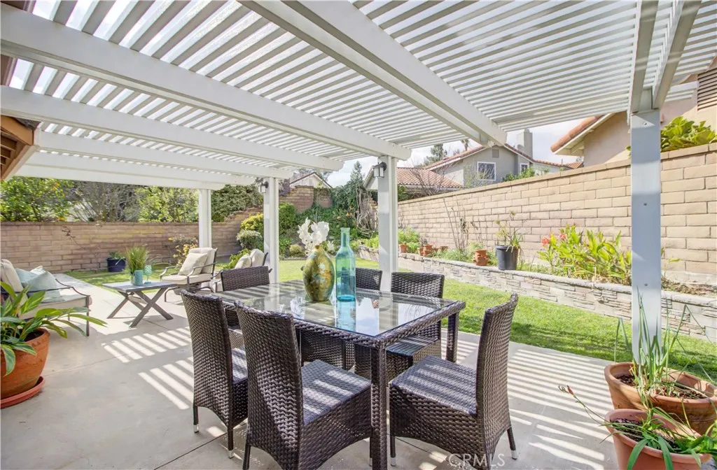 Step outside to enjoy the Alumawood patio cover and expansive lawn, ideal for entertaining or relaxing. The attached two-car garage includes a workbench and built-in storage with ladder access.