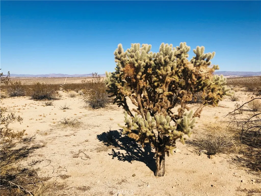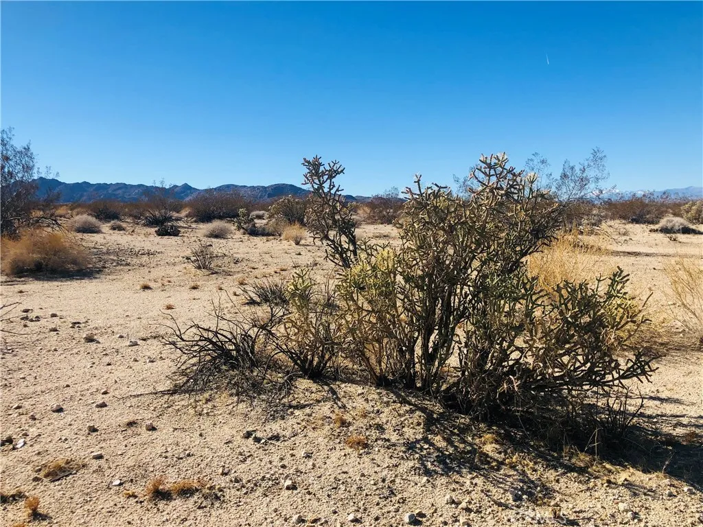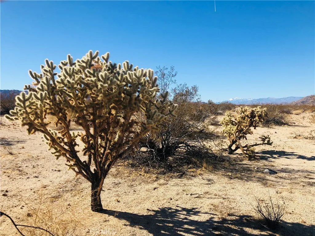 Secluded 5 acres with fantastic views across miles of desert to rocky hills and snow-capped mountains in the distance. Cholla and other cacti scattered throughout. No utilities or direct access by road. Property does not have an assigned address – for listing purposes only. GPS: (34.1448754, -116.1382362) APN: 0613-232-20-0000. Owner May Carry.