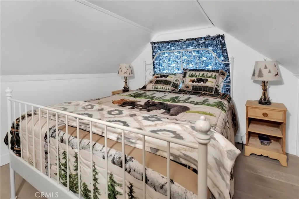 Excellent income and investment opportunity—two cabins on one lot in the Sugarloaf area of Big Bear. The two-story 1BD/1BA cabin (approx. 600 sq ft) features the bedroom upstairs with kitchen, living room, and bathroom on the main level. Updates include new kitchen cabinets, a recently painted bathroom with new vanity, and a front patio.