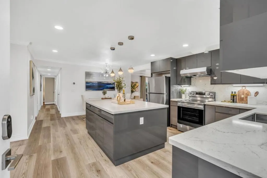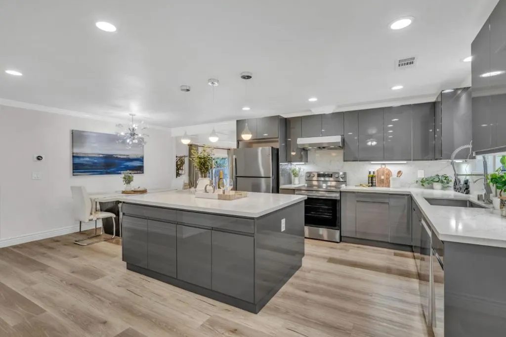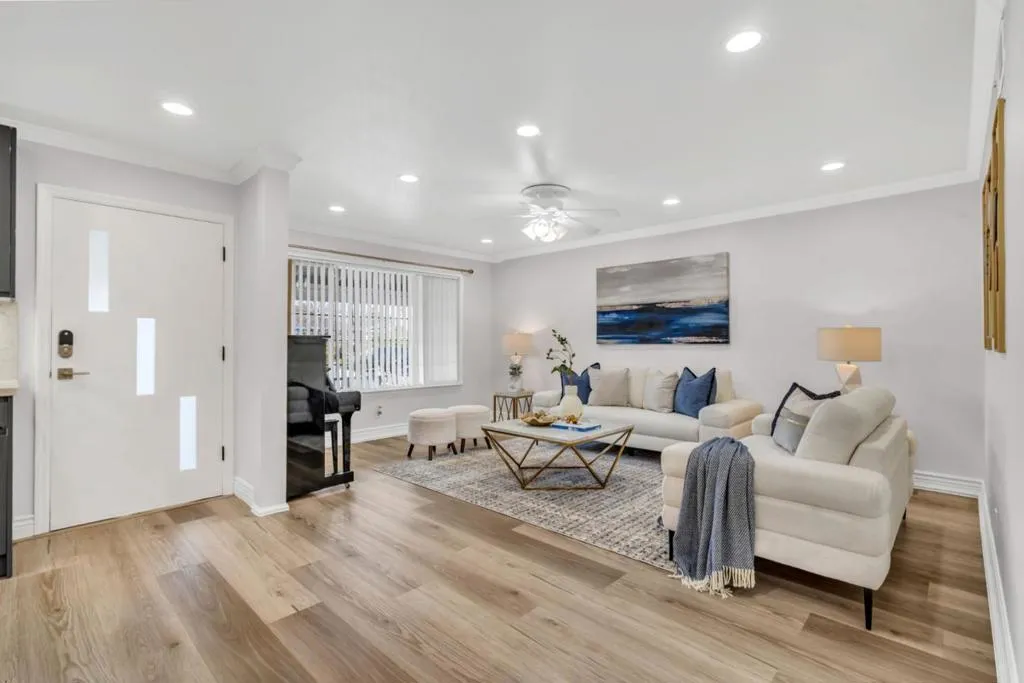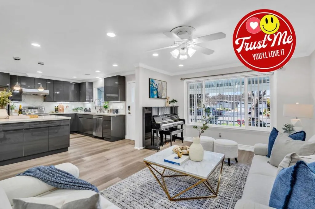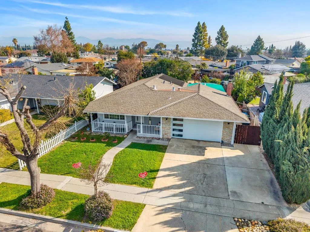 *WOW* A TRUE SHOWSTOPPER YOU DON’T WANT TO MISS. Nestled in a peaceful neighborhood w/ good schools, this gorgeous home showcases charming curb appeal w/ lush lawn, private porch, stylish exterior accent wall and sleek modern garage door. Move-in ready interior features newer paint, crown molding, LED recessed lighting and high-quality LVP flooring. Contemporary kitchen highlights an oversized island w/ pendant lights, glossy soft-close cabinetry, stainless steel appliances, modern Fotile range hood, and R/O water system. Dining area w/ designer chandelier. Inviting family room offers cozy fireplace, wall molding, embassy ceiling and elegant light fixture. Central HVAC w/ Nest thermostat provides year-round comfort. Remodeled bathrooms feature marble-style floor-to-ceiling tile, glass-enclosed showers w/ body jet systems, and smart Pasgo bidet toilets. Well sized bedrooms. Additional garage upgrades: whole-house water filtration, epoxy flooring, LED lighting, cabinets, utility sink, EV charger pre-wire. Low-maintenance backyard offers covered patio, pavers, storage and gardening space. Prime location: near major tech campuses, shopping, markets, and freeway access. THE OWNERS HAVE POURED THEIR HEART INTO THIS EXCEPTIONAL HOME AND IT IS READY TO WELCOME ITS NEXT PROUD OWNER – YOU!