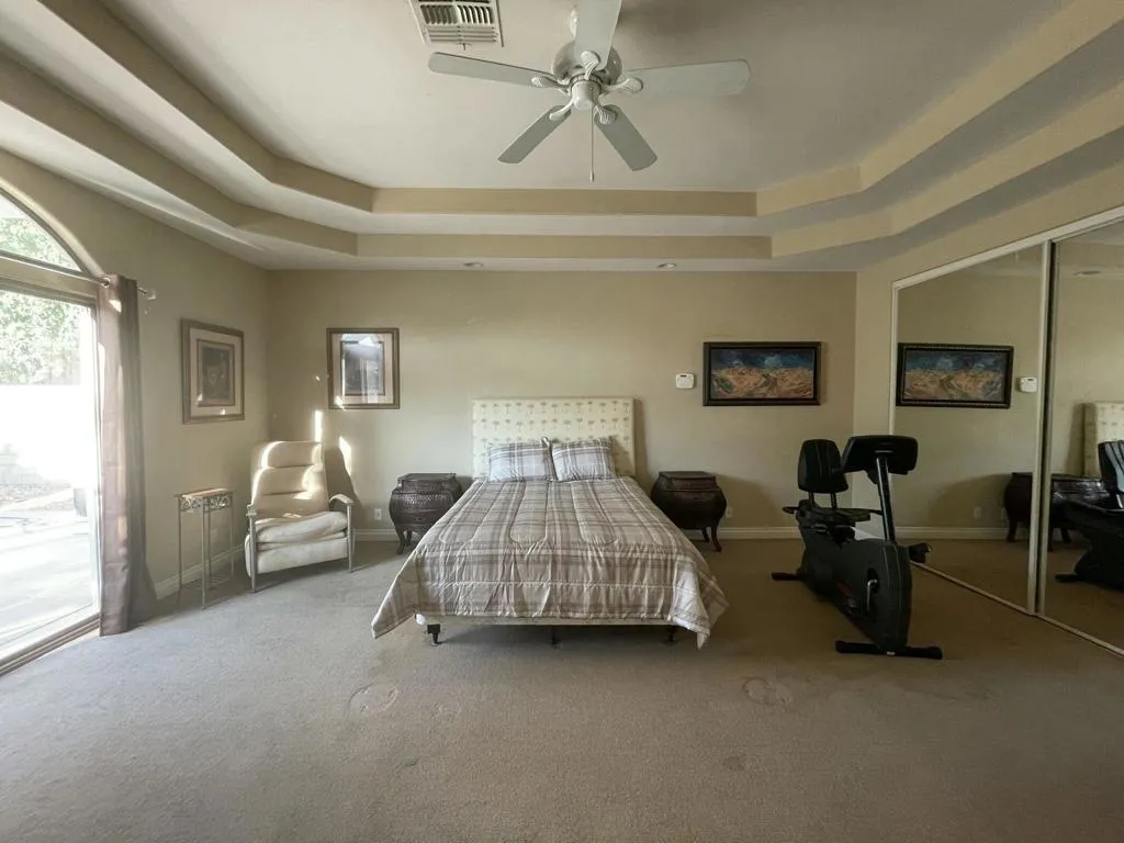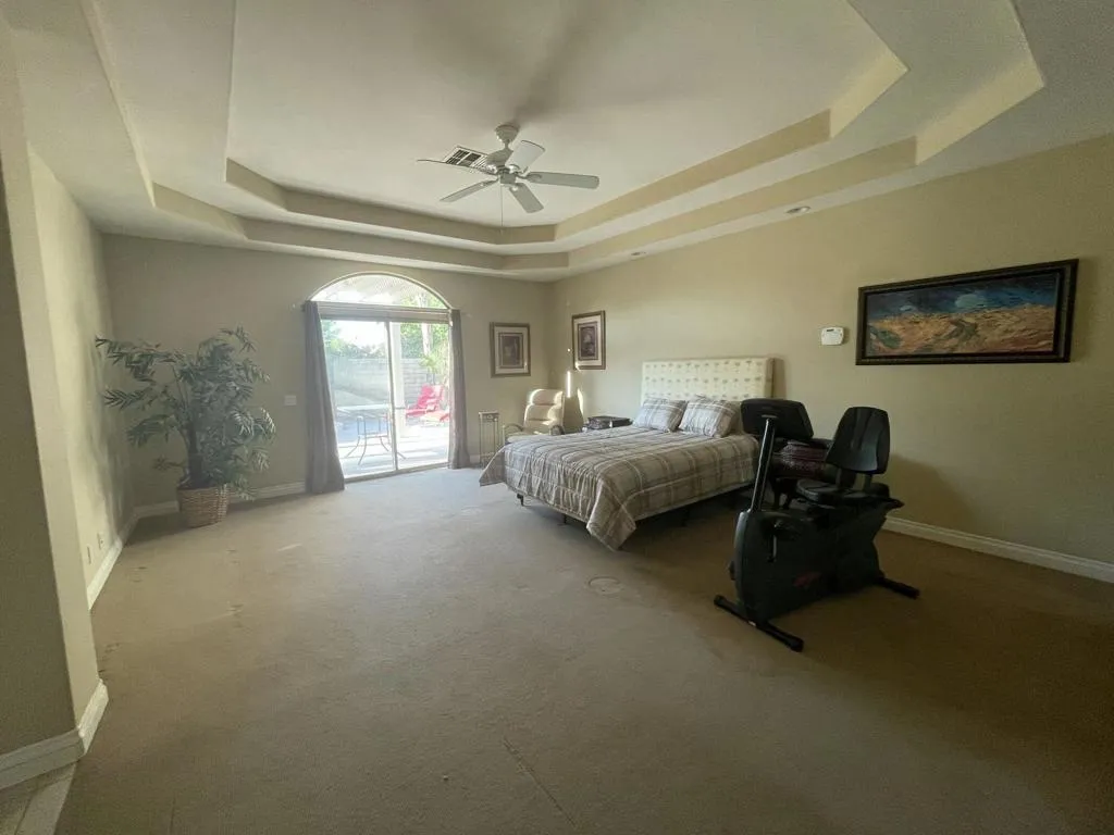 Marketing Remarks: This stunning 3-bedroom, 4-bathroom home epitomizes elegance, comfort and luxury. The master suite features a spacious bedroom, a luxurious full bath with a soaking tub, dual sinks, and a walk-in closet. The two additional bedrooms each have their own ensuite 3/4 bathrooms, ensuring privacy and convenience for family or guests. An additional bonus office/library room has floor-to-ceiling cabinets/shelving with glass doors to view contents. A guest half bath is conveniently located near the front door. The grand open floor plan is highlighted by high ceilings and an elegant living room with a cozy fireplace. There are two dining areas, perfect for both formal and casual meals. The gourmet kitchen is upgraded with high-end appliances, a center island, and a hightop bar for additional seating. It boasts two dishwashers for easy cleanup and a wine cooler for the connoisseur. Step outside to an inviting pool with a waterfall feature and a spa Jacuzzi for ultimate relaxation. The grassy area is perfect for play or pets, and the built-in BBQ grill makes outdoor entertaining a breeze. Additional amenities include an extra room for laundry with a sink, a 2-car garage, an extra garage space/door for a golf cart and space for a trailer/RV in the backyard. The outdoor driveway leaves room for 3 additional parking spots for guests in front.