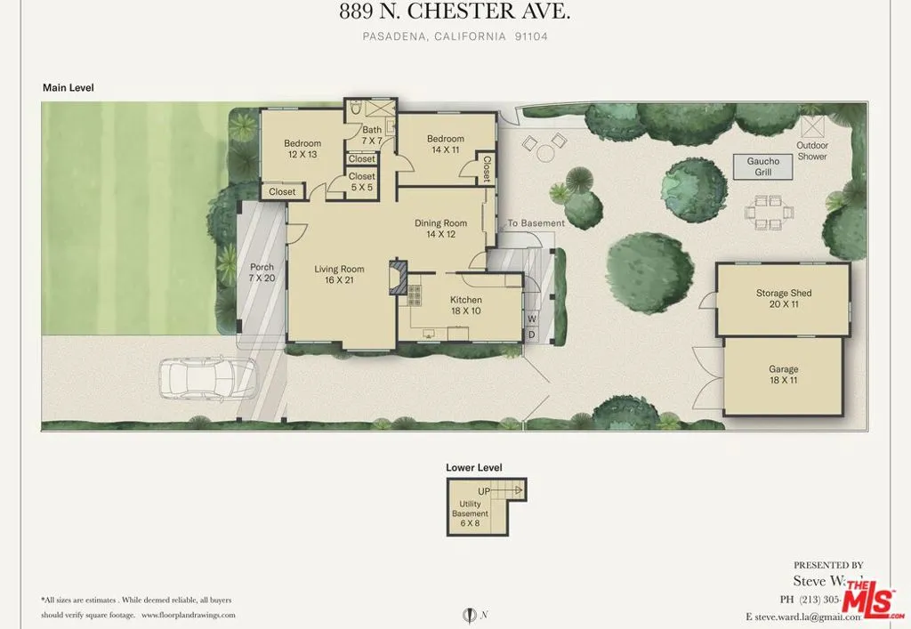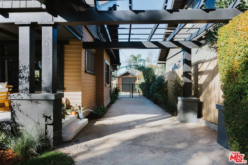 Historic 1907 classic Craftsman bungalow awaits its new owner. Welcome to 889 N. Chester Avenue, located within the Bungalow Heaven Landmark District of Pasadena. This updated 2-bedroom, 1-bathroom home offers 1,160 square feet and was built and designed by developer Henry C. Deming. Sited on a 7,606-square-foot lot, the home is anchored by its strong horizontal proportions and cross-gabled roofline. Sheathed in clapboard on the lower story and shingles on the gable ends, a front-gabled porch occupies the north two-thirds of the faade. Broad windows with rows of small lights across the top and extended lintels provide additional horizontal emphasis, a hallmark of classic Craftsman design. A wooden pergola extends north from the house, spanning the driveway. From the front porch, step through the home’s entrance, flanked by half-height sidelights, into a light-filled living room featuring hardwood floors and a decorative fireplace. The spacious formal dining room showcases an original built-in buffet with leaded glass cabinet doors, while a door to the backyard enhances indoor/outdoor entertaining. The remodeled kitchen with quartz counter tops includes a breakfast area and offers ample cabinetry for cooking and storage. A coffee bar provides additional counter space for prep needs. The vintage Wedgewood gas stove nods to the home’s period, while a newer refrigerator and dishwasher deliver modern convenience. Just outside the kitchen is a side-by-side covered laundry area with washer and dryer. The naturally lit, modest-sized bedrooms share a Jack-and-Jill bathroom featuring beautiful new ceramic tile, sink, and shower. An original large built-in cabinet provides generous linen storage and shelving. The front yard offers a large grassy area, while the driveway and backyard feature decomposed granite, providing a more sustainable landscape solution. Enjoy alfresco dining using the built-in Argentine barbecue, and cool off on warm summer days with the outdoor shower. Inspired by the neighborhood’s past, the property includes a mini citrus grove with kumquat, orange, lemon, and mandarin trees. The California basement, with exterior access, houses the new water heater and provides additional storage. A workshop area sits adjacent to the one-car garage, and the driveway offers ample off-street parking along with an electric vehicle charger. Located in the heart of Bungalow Heaven, McDonald Park is just a few blocks awaya beloved neighborhood park where children play and residents enjoy views of the foothills. Experience the strong sense of community and enjoy nearby favorites such as Millie’s Caf, Roma Market, The Italian Deli Co., Bacchus Kitchen + Wine Bar, Lavender & Honey Espresso Bar, Seed Bakery, Madeline Garden Bistro & Venue, Bistro 45, Union Restaurant, Old Sassoon Bakery, Fika Fika Coffee, Bloomfield Creamery, and Erewhon. Come see why this special home is listed on the National Register of Historic Places.