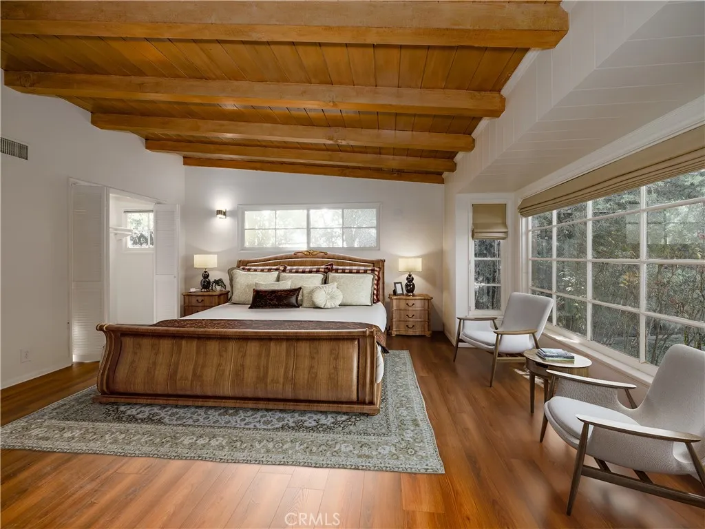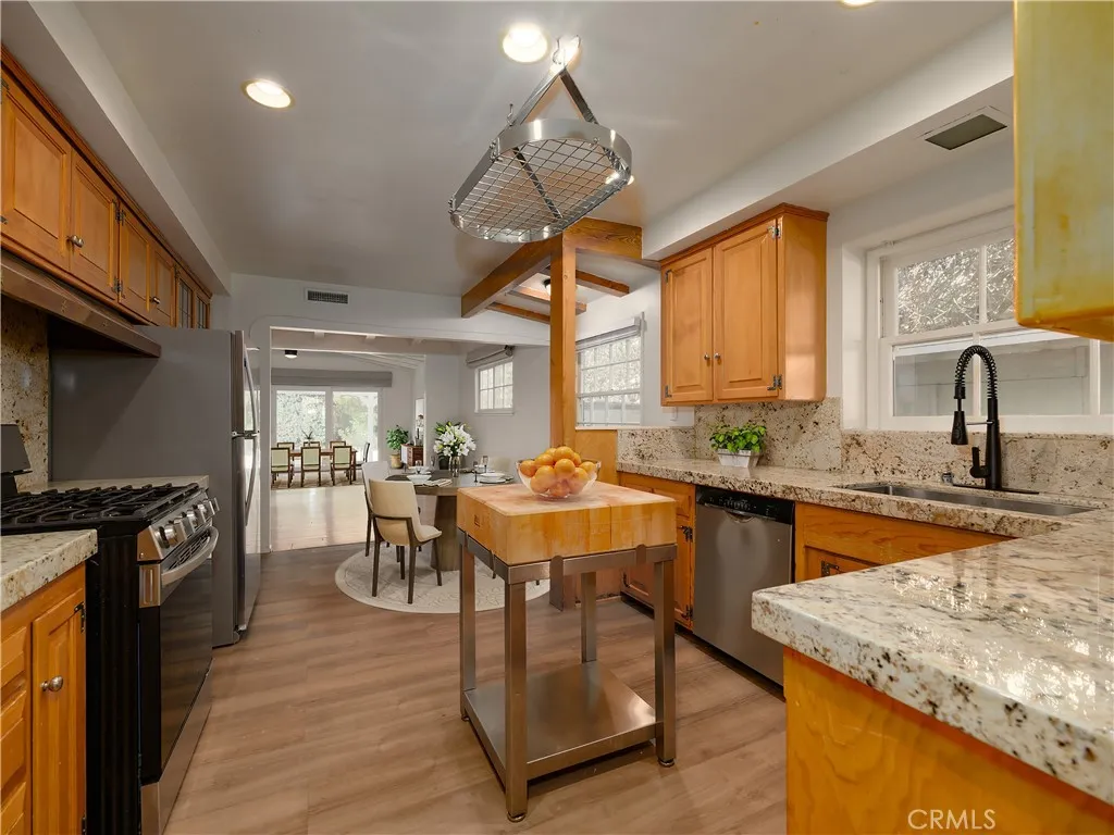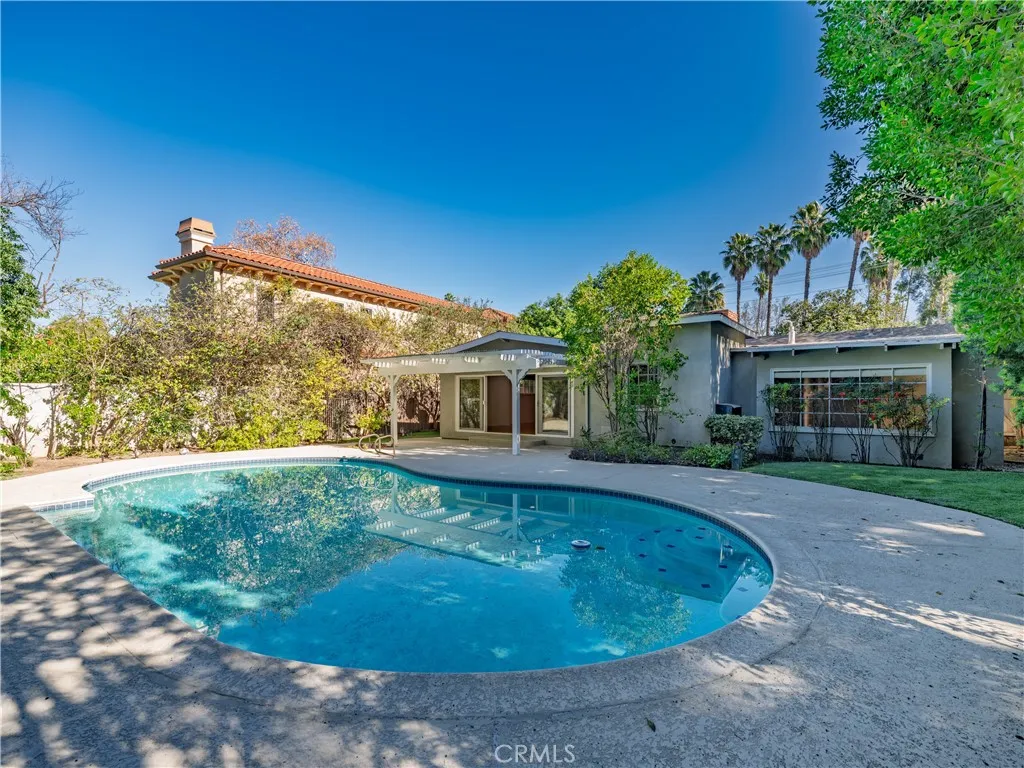 Welcome to 4539 Hayvenhurst Avenue, a gated and private single-story residence ideally located south of the Boulevard in the heart of Encino, within the highly sought-after Lanai Road School District. This 3-bedroom, 3-bath home spans 2,694 square feet and offers a rare combination of privacy, comfort, and accessibility. Set behind mature landscaping, the interior features a spacious open floor plan filled with natural light, warm wood flooring, and inviting living and dining areas designed for both everyday living and effortless entertaining. The kitchen opens seamlessly to the main living spaces and offers generous cabinetry, stone countertops, and ample prep space, making it ideal for gatherings both large and small. The multiple bedrooms provide flexibility for family, guests, or a home office, while the primary suite serves as a peaceful retreat with garden views and a comfortable en-suite bath. Sliding glass doors connect the interior to the expansive backyard, creating a true indoor, outdoor lifestyle. Outdoors, the property feels like a private oasis, featuring a covered patio, lounging areas, and a sparkling pool surrounded by lush greenery, perfect for relaxing, entertaining, or enjoying Southern California’s year-round sunshine. Centrally located with easy access to Century City, Beverly Hills, and Santa Monica, this Encino home combines convenience, privacy, and timeless appeal in one of the Valley’s most desirable neighborhoods.