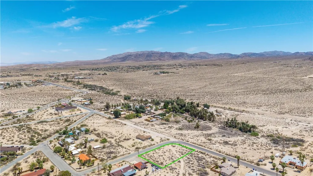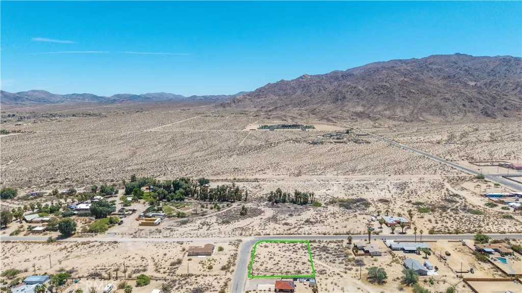 Scenic corner lot in the heart of 29 Palms! This 0.6-acre parcel features a paid water meter and seller states it’s connected to city power. Located directly across from the iconic 29 Palms Inn, you’ll enjoy sweeping desert views and a prime spot just minutes from the entrance to Joshua Tree National Park. Whether you’re looking to build a desert getaway or invest in a fast-growing area, this lot offers location, utility access, and natural beauty.