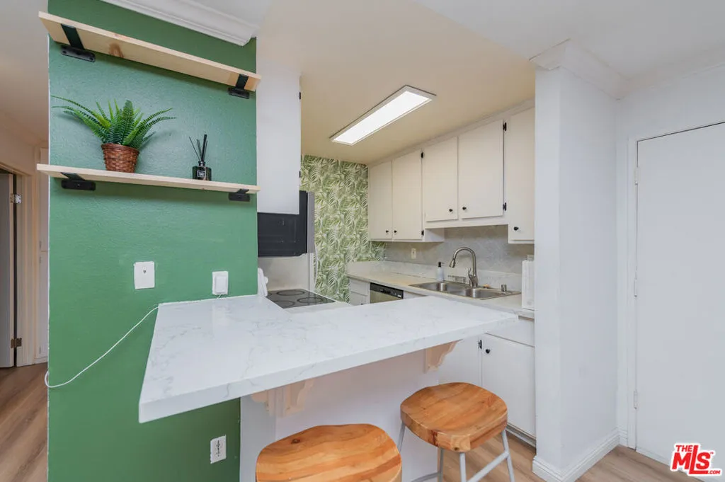 Beautiful top-floor condo featuring a serene balcony with lush, tree-filled views. This light-soaked residence is located within a resort-style community and offers access to highly regarded schools. Just steps away, enjoy a sun-drenched sparkling pool and a spacious community room perfect for gatherings. Continue along the scenic paths to two community tennis courts, all thoughtfully integrated into the tranquil grounds. The unit has been recently renovated, showcasing new hard-surface flooring throughout, a fully remodeled bathroom with modern fixtures, a kitchen with updates including sleek countertops and contemporary finishes, and a large walk-in closet providing abundant storage. Tasteful designer touches and quality materials elevate the home’s modern look and feel, creating an inviting space that combines comfort and style. Step onto the private balcony to unwind and take in the peaceful setting surrounded by mature, majestic trees. Additional highlights include one dedicated parking space plus ample guest parking within the community. Ideally situated adjacent to the South Coast Botanic Garden, this community offers an exceptional setting for those who value nature, comfort, and convenience — a perfect blend of resort living and neighborhood charm.