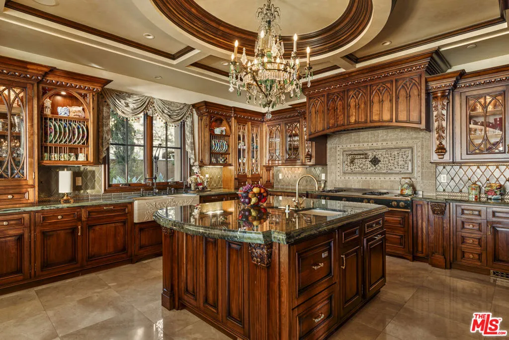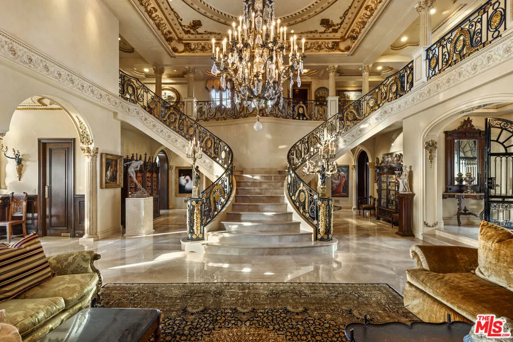 Chateau Soleil is a French chateau-inspired masterpiece perched atop the hills of Newport Coast within the ultra-exclusive Crystal Cove enclave. This extraordinary estate commands sweeping ocean views stretching from the peninsula to Catalina Island. Custom-built with uncompromising attention to detail, the residence showcases unparalleled craftsmanship and finishes throughout. Imported stonework, rare materials, and one-of-a-kind antique pieceseach thoughtfully curated from around the world, including every chandelier define the home’s timeless elegance. Arrival is nothing short of cinematic, greeted by two mature olive trees and a manicured garden adorned with classical water features that guide you to the grand entrance. The opulent foyer opens to a breathtaking living room crowned by a dramatic 28-foot ceiling and illuminated by a palatial Louis XV Baccarat chandelier, crafted after a model by renowned French sculptor Jacques Caffieri. A grand staircasean exquisite replica of the Titanic railing with gold-plated detailing leads to the second level. Also on this floor, the office is a true work of art, featuring hand-carved mahogany wall panels and a richly coffered ceiling. The formal dining room centers around a magnificent 15-foot table accommodating up to 12 guests and opens to the expansive backyard with dramatic ocean views. The world-class kitchen is designed to Michelin-chef standards, outfitted with dual oversized refrigerators, Viking appliances, a La Cornue gas range, and an impressive center island. Adjacent is a casual dining area accented by a stunning Murano chandelier. The spacious family room embodies European elegance with a massive fireplace, ornate coffered ceilings, and multiple French doors that open onto the enchanting backyard. The residence offers four bedrooms, including one on the main level and three upstairs. The expansive primary suite is a private sanctuary featuring a sitting area with an elegant fireplace, French doors opening to a generous private terrace overlooking the pool and sweeping ocean views, and a lavish en-suite bathroom with a soaking tub, separate shower, and dual walk-in closets. An elevator descends to the lower-level entertainment floor, complete with a game area, full bar, and spa retreat featuring a steam shower and sauna. The neoclassical private cinema is a masterpiece of its own, adorned with red silk walls and rare figural torchres by Antoine Durenne, Paris, circa 1900. The backyard is a serene oasis with an infinity-edge pool and integrated spa, expansive lawn, romantic seating areas, and a fire pitall framed by breathtaking coastal vistas. The subterranean garage can accomodate 5-6 cars. The scale, craftsmanship, and architectural pedigree of Chteau Soleil make this estate a truly one-of-a-kind masterpiece, offering an unparalleled lifestyle of elegance, privacy, and world-class luxury.