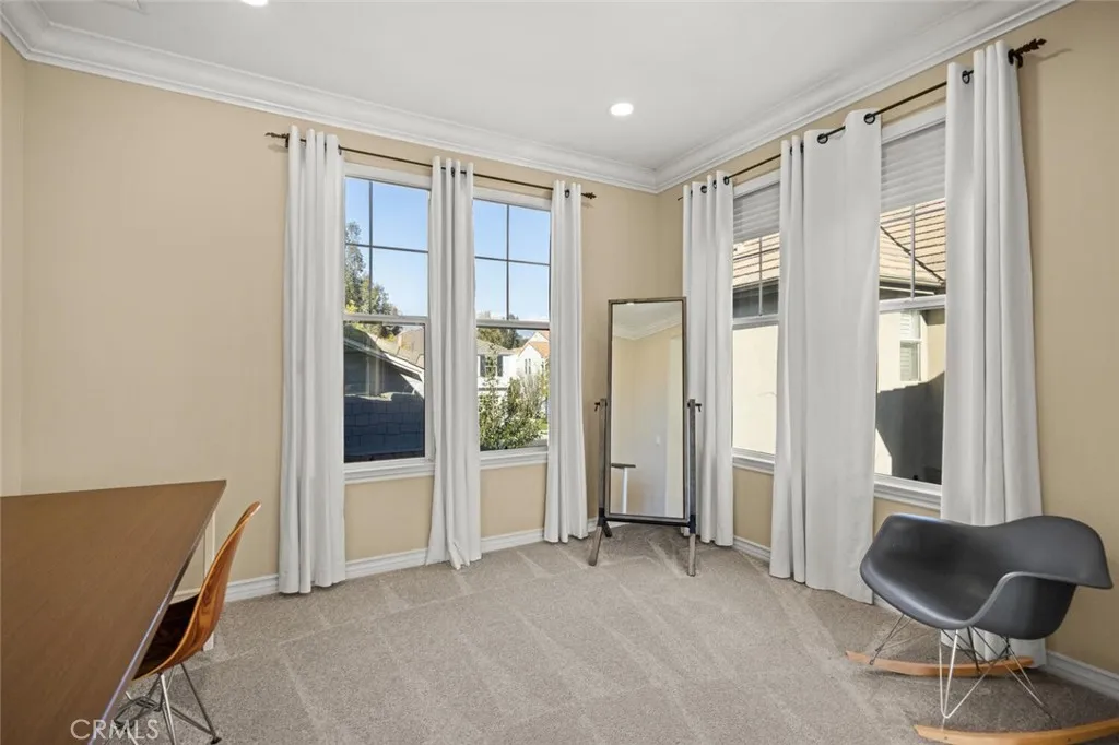 The residence features four bedrooms plus a downstairs flex room (currently used as a gym) with a full bath nearby, ideal for an office or optional bedroom. The kitchen was enhanced in 2024–2025 and includes a Sub-Zero refrigerator, opening to the main living area and backyard views.