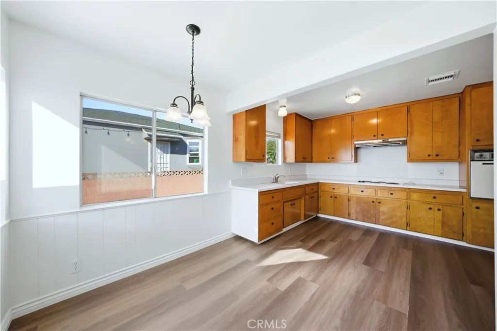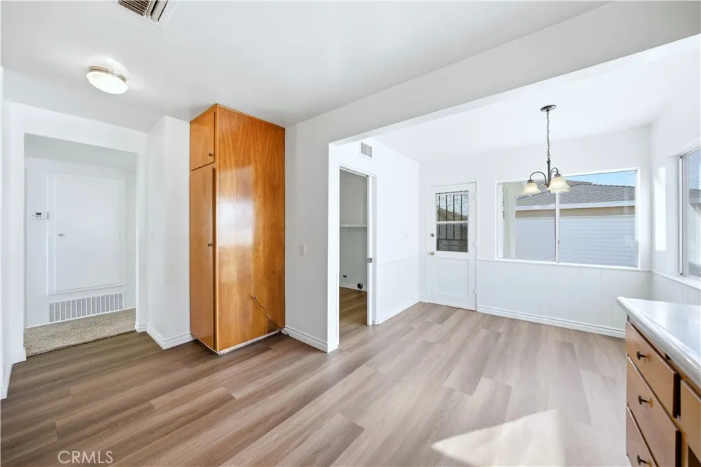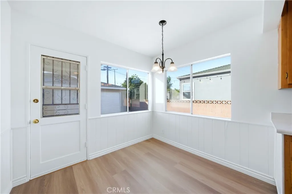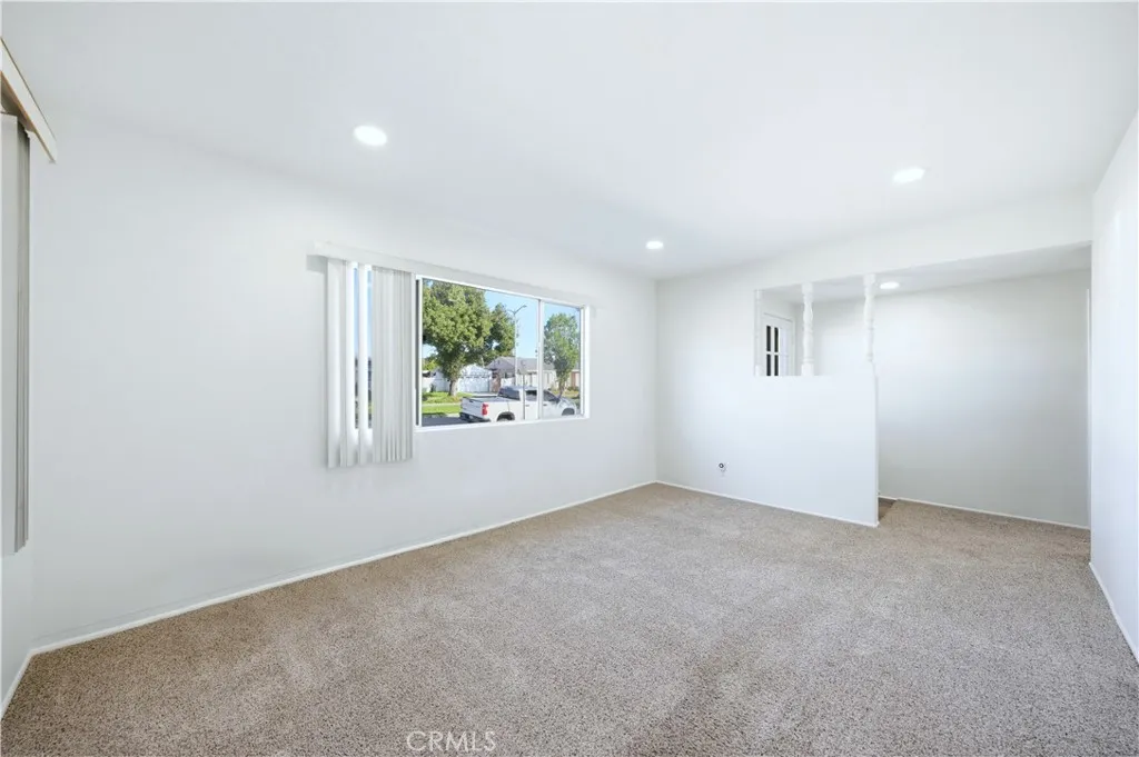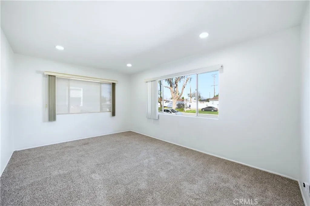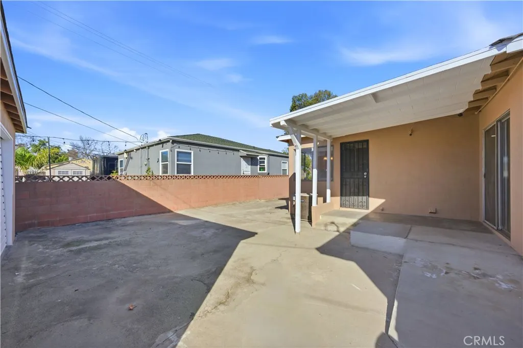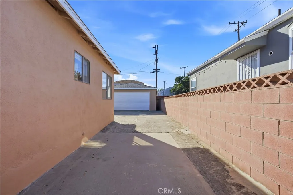 This single-story 3-bedroom, 2-bath home offers 1,349 sq ft of living space on a 5,002 sq ft lot with a detached 2-car garage and long driveway. Recent updates include fresh interior and exterior paint, recessed lighting in the hallway, new luxury flooring in the kitchen, dining area, laundry room, and bathrooms, and a newer roof. The interior features a functional floor plan with a living room accented by recessed lighting and natural light from multiple windows. The kitchen includes an eating area, wood cabinetry, electric cooktop, and direct access to the backyard. The primary bedroom includes mirrored closet doors and a private three-quarter bathroom with walk-in shower. Two additional bedrooms are served by a full hall bathroom with dual-sink vanity and tub/shower combination. An individual laundry room with built-in shelving adds convenience. Additional features include central air conditioning, neutral interior finishes, a mix of carpet and hard-surface flooring, and multiple windows throughout. The backyard offers a concrete patio area, lawn space, and block wall fencing, providing separation from neighboring properties. The detached garage is positioned at the rear of the lot. Conveniently located near major surface streets, parks, dining, and shopping, with access to surrounding areas of Montebello and nearby communities.
