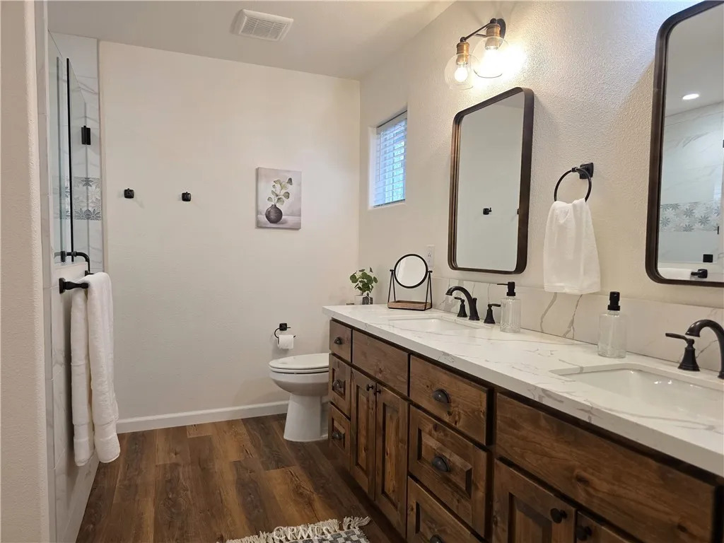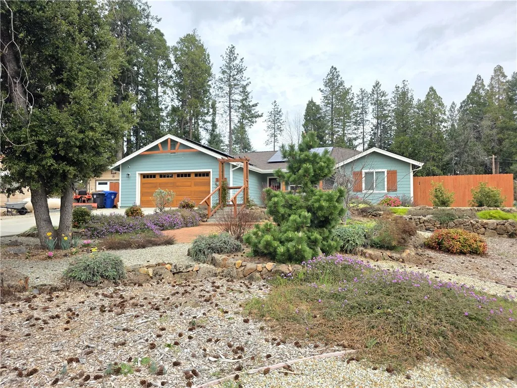 Welcome to this well-designed home in a peaceful forest community, conveniently located near Skyway for an easy drive to Paradise or Chico. Rebuilt as a true forever home, nearly $100,000 was invested in exterior improvements, creating a beautifully landscaped yard with seasonal blooms and rock accents. The owned 5.5kWh solar system fully offset the current owner’s electric usage, offering excellent energy efficiency. Inside, vaulted ceilings and custom wood cabinetry add warmth and function, with pull-out drawers and under-cabinet lighting in the kitchen. The split-bedroom floor plan offers privacy, placing the primary suite in the rear corner with a double-sink vanity and upgraded walk-in shower. On the opposite side are the guest bedroom, hall bath, and an office or hobby room with 220V power. Additional features include an oversized garage, insulated interior walls, a split HVAC system with air purification, and a whole-house Generac propane generator. Located in Magalia, you’ll enjoy close access to hiking, fishing, hunting, off-roading, and other outdoor recreation, plus local community events throughout the year. Buyers to verify any and all information to their satisfaction.