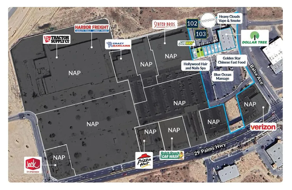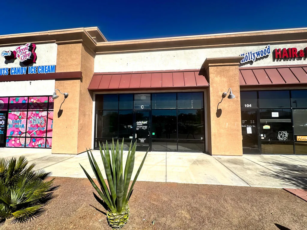 Newer retail center, well maintained and ready to lease. Suite 103-FOR LEASE- 1440 SF suite. Suite 103 was a former Cricket Wireless. Employee area and storage with small office and private restroom.Great signage available (on monument and building). Ample parking and great visibility. Join Dollar Tree, Harbor Freight, Tractor Supply, Stater Bros., Subway, Quick Quack, Verizon and more.