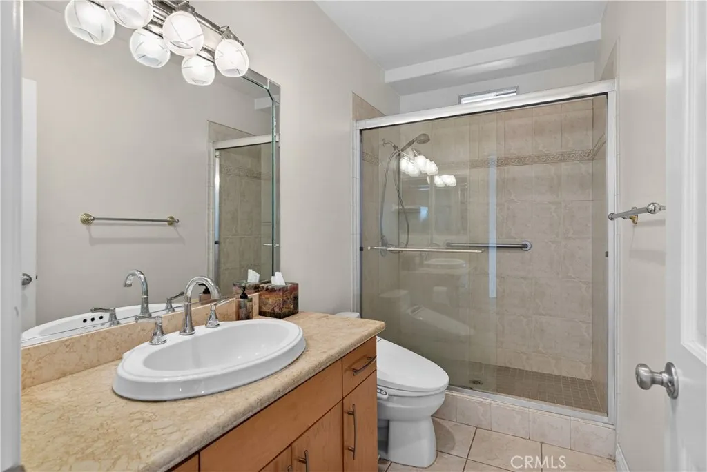 The primary suite serves as a private retreat, featuring scenic canyon views, a private balcony, oversized walk-in closet, and a luxurious bathroom with a soaking tub. Additional upstairs and downstairs suites offer privacy, office potential, and outdoor access, while a large bonus room with built-in bar opens directly to the pool area—ideal for hosting and recreation.