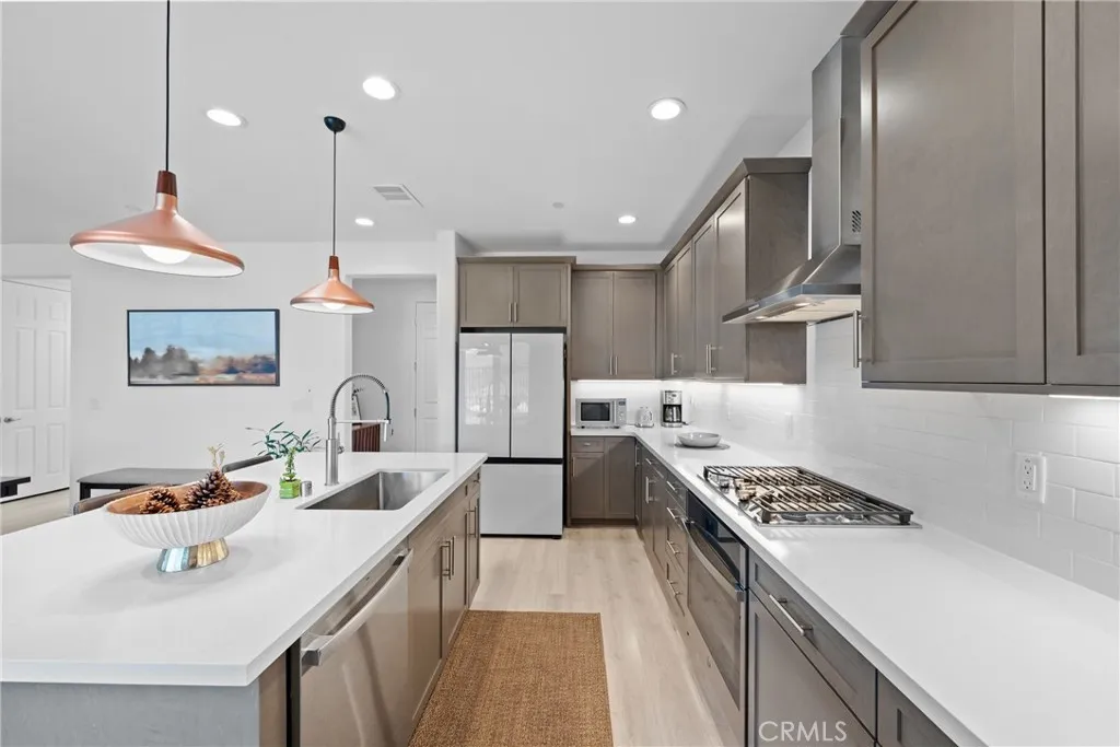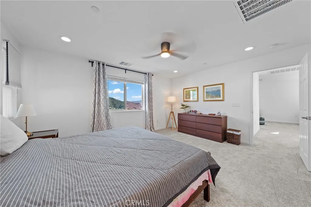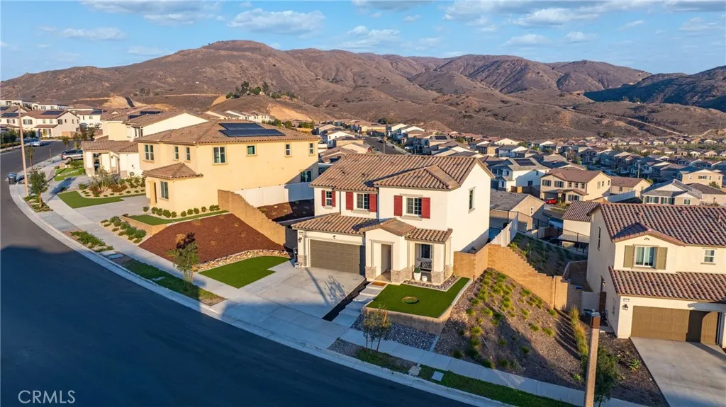 BETTER THAN MODEL HOME!!! Located in a prestigious gated community with breathtaking city and mountain views, this stunning home sits on a premium view lot. The owners spent over $60,000 creating a professionally landscaped front and backyard filled with vibrant flowers, lush plants, and decorative mulch, plus epoxy-coated flooring on both the garage and front porch. The spacious side yard offers extra outdoor living space with open scenic views. Inside features an elegant study off the entry, a spacious great room, and a gourmet kitchen with maple cabinets, quartz countertops, a large center island, walk-in pantry, and adjacent dining area. Upstairs includes a cozy loft with beautiful view, an exceptional primary suite with additional windows, a generous walk-in closet, and a private bath, along with two secondary bedrooms each with their own walk-in closets, and a shared hall bath. The laundry room is conveniently located upstairs with sink pre-plumbing. Every room features ceiling fans, and the home has been meticulously maintained in spotless condition. Residents enjoy a resort-style clubhouse with pool, spa, BBQ area, fire pit lounge, and dining/entertainment spaces. Close to Orange County and within a top-rated school district, this home perfectly combines luxury, comfort, and stunning views.