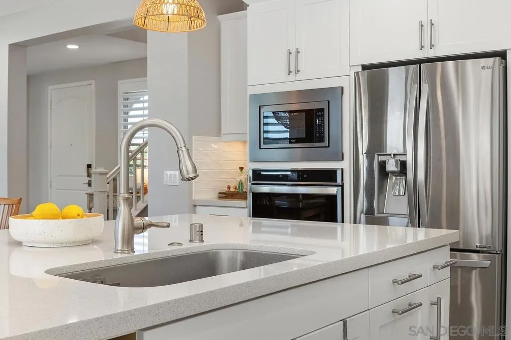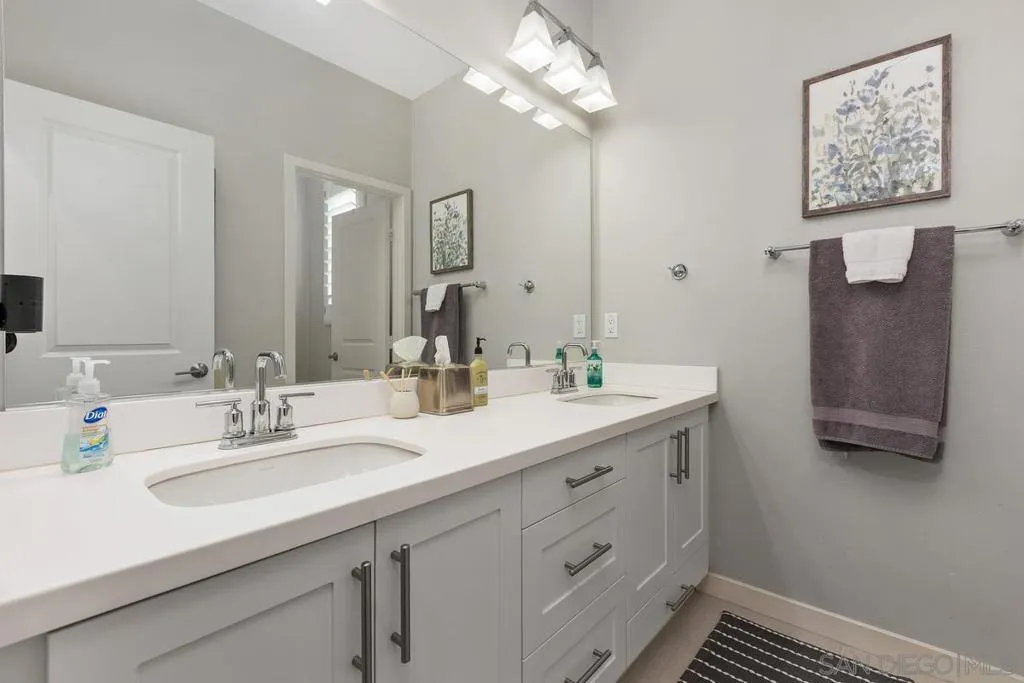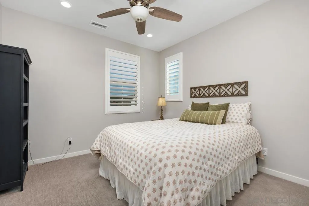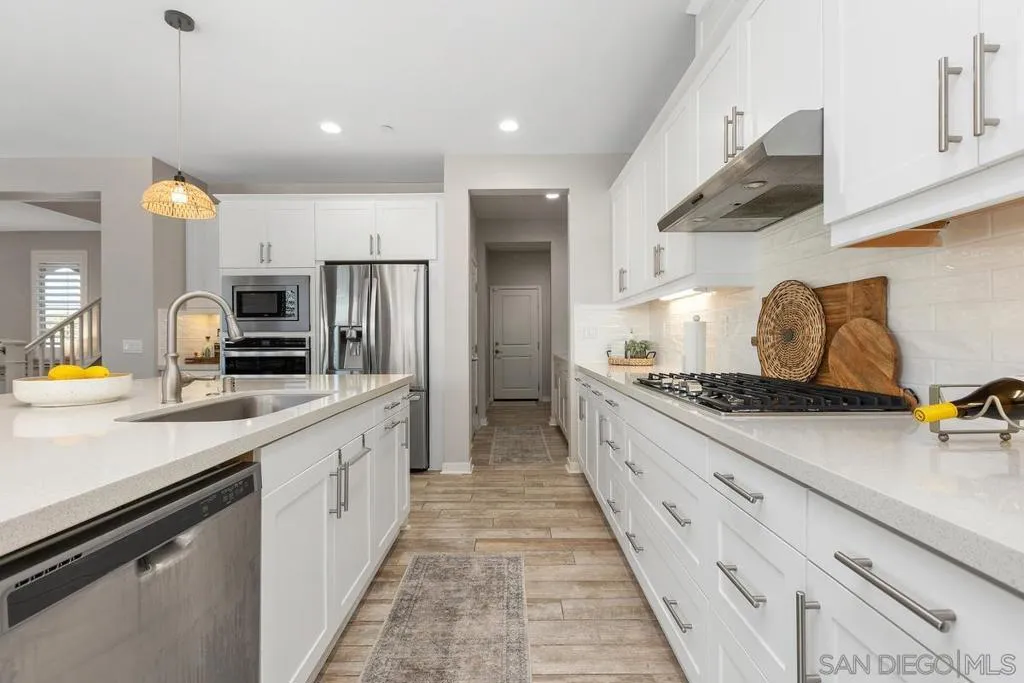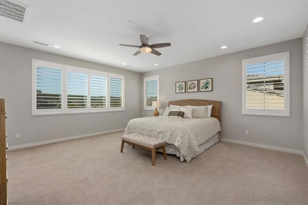 Nestled on a quiet cul-de-sac in the desirable SL Rey community, this beautifully designed 4-bedroom, 2.5-bath home blends contemporary sophistication with everyday functionality. The open-concept great room creates an inviting space for living and entertaining, while the chef’s kitchen impresses with quartz countertops, a large center island, custom white soft-close cabinetry, high-end stainless steel appliances, 5-burner gas vented range, and charming cappuccino station. Thoughtfully curated finishes include tile plank flooring and plantation shutters throughout. Upstairs, the serene primary suite features a spa-inspired bath w/dual vanities, walk-in shower, two separate wardrobe closets.Conveniently located within walking distance to Bonsall Elementary School and future Bonsall Community Park, with No Mello-Roos. Resort-style outdoor spaces shine with a front seating area and center fountain, plus a backyard retreat offering an above-ground spa and built-in BBQ island with umbrellas, storage, and refrigerator. Additional highlights include two separate attached finished garages with epoxy flooring and openers, Instant hot water heater and 10-Panel Owned solar system. Single-stall garage offers private entry to a home office or optional main-level bedroom. Smart-home features include video doorbell, Wi-Fi thermostat, smart entry lock, lighting control, and whole house fan.