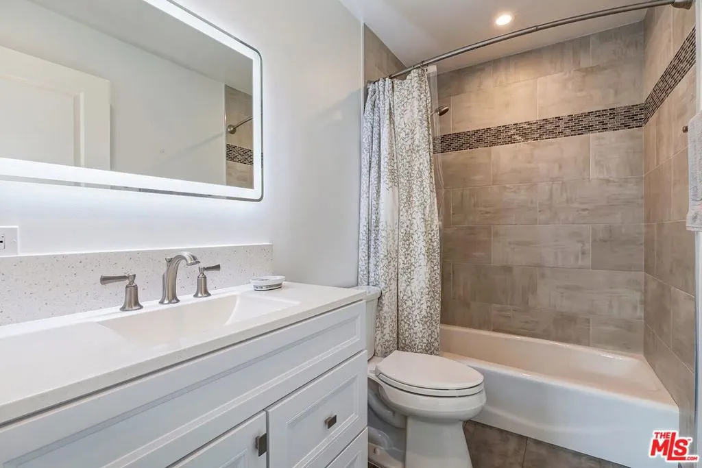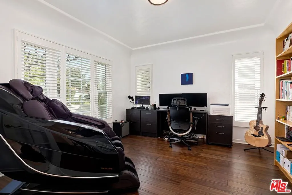 An idyllic Spanish style retreat on a family friendly street, this 3 bedroom/2 bath home- fully remodeled Spanish style in Beverlywood- is the perfect blend of romantic charm and modern living. Completely renovated to reflect the needs of today’s buyer, this beautiful 1530 sq ft home, originally built in1931, has been meticulously updated. Architectural highlights include: coved ceilings, a slate fireplace and exposed beams in the formal living room, elegant French doors lead to a versatile third bedroom, currently configured as a private home office, and the entry courtyard with authentic Spanish tiles. The bright and cheerful kitchen offers classic subway tiles, Caesarstone countertops, custom cabinetry, extended prep area, Wolf range, stainless LG refrigerator and farmhouse sink. A separate laundry room has room for a desk, creating an efficient use of space. The additional bedrooms are both generous in size with ample custom designed closets and attached designer bathrooms. Step outside to the private backyard and enjoy dining under Bistro lights on the brick patio, surrounded by mature citrus and Camelia trees. The yard also features overflowing flowerbeds, and a long, gated driveway for kids to enjoy riding bikes or tossing a ball. With modern essentials such as a detached two-car garage, central air system, Plantation shutters and double paned windows, this lovely jewel box home is a rare find and delightful gift waiting to be opened.