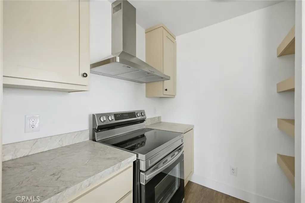 The kitchen is both functional and elegant, offering hardwood cabinet doors and face frames, stainless steel appliance package (including refrigerator with ice maker, smooth-top range, dishwasher, and European range hood), brushed nickel fixtures, and recessed lighting — perfect for everyday living and entertaining.The bathroom features a fiberglass shower with glass enclosure, backsplash, and Pfister® fixtures for a polished finish.