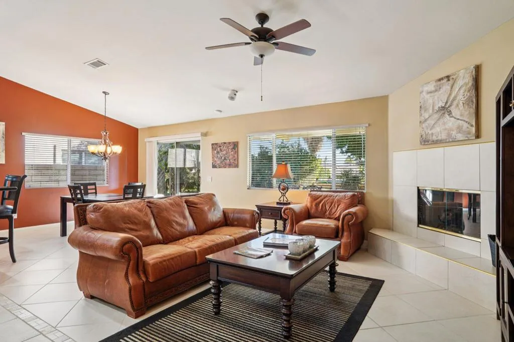 Surrounded by mature, hard-to-find shade trees and lush landscaping that creates a private, park-like setting, this golf course home inside the gated Indian Palms Country Club truly stands out. The established greenery provides natural beauty, added privacy, and welcome shade, while still offering open golf course views from the back patio, a rare combination in the community. Offered furnished, mostly turnkey, this single-story home features approximately 1,750 sq ft with 3 bedrooms and 2 full baths, designed for relaxed desert living. The open floor plan is ideal for entertaining and everyday comfort. The kitchen includes granite slab countertops, a center island with vegetable sink, pantry, breakfast bar, and stainless steel appliances, flowing seamlessly into the dining area and family room with gas fireplace, ceiling fans, &Smart TVs. The primary suite offers a walk-in closet and dual sinks, while two additional bedrooms provide flexible space for guests, hobbies, or a home office. Outdoor living shines with a private front courtyard and a covered back patio overlooking the golf course, perfect for morning coffee in the shade or evening dining with sunset views. Residents enjoy access to multiple community pools, and this home includes the deeded Lifestyle Center with fitness center, pickleball, bocce ball, tennis courts, clubhouse, and on-site restaurant, all with close proximity to Empire Polo Grounds, Indian Wells Tennis Garden, shopping, dining, and freeway access. Owner is related to the listing agent.