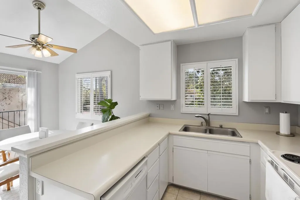 WELCOME TO THE HIGHLY DESIRABLE THE FALLS COMMUNITY OF RANCHO BERNARDO! This End Upper Corner Unit boasts picturesque greenbelt views and privacy. Light and Bright One-Bedroom, One-Bath Condo Beautifully Updated and Turn-key! The inviting kitchen with pantry seamlessly flows into the dining area and living room with fireplace. Lots of natural light throughout. Private bedroom with large walk-in closet. Plenty of storage throughout the home including storage closet in entry and additional in hallway. Enjoy the perfect blend of comfort and privacy with your own full size washer and dryer. Perfect for entertaining, the home boasts views and a covered carport just steps away. Residents enjoy a meticulously maintained community with two sparkling pools, a spa, clubhouse, tennis courts, and barbeque area. Enjoy the convenience of nearby 4S Ranch shopping, dining, trails, parks, Bernardo Winery, and Lake Hodges. Amazing opportunity to purchase your own slice of paradise! Don’t miss your chance on this must-see property!