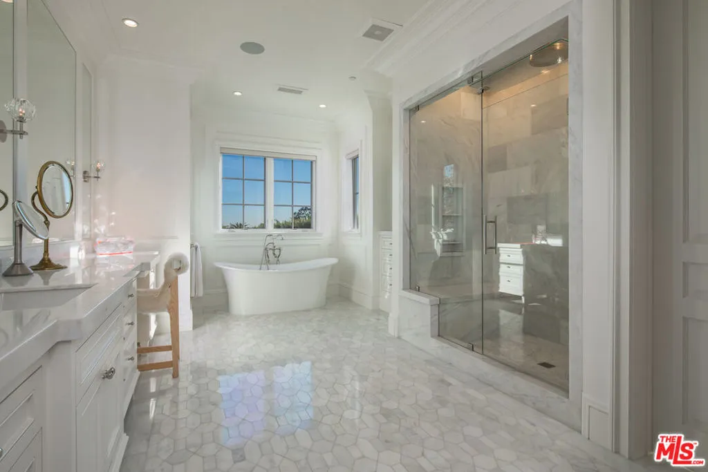 Situated on an over 18,000-square-foot lot in the heart of the Riviera, this stunning traditional estate offers over 10,000 square feet of living space, blending timeless architecture with today’s open-concept indoor-outdoor lifestyle. Designed for exceptional flow and abundant natural light, the home lives beautifully for both everyday comfort and effortless entertaining and features an elevator to all three levels. On the main level, formal living and dining rooms are complemented by an open kitchen and family room; the true center of the home. Walls of pocket doors open directly to the backyard, creating seamless indoor-outdoor connection with views over the pool and grounds. The expansive chef’s kitchen features generous bar seating, ample prep space, a bright breakfast area, and a windowed nook overlooking the yard, while a substantial butler’s pantry supports entertaining at any scale. A mudroom and laundry room off the garage and an ensuite bedroom, currently used as an office, complete the level. Upstairs, the bedroom level is exceptionally bright, with an abundance of natural light throughout. The luxurious primary suite offers dual walk-in closets and two generously sized bathrooms. An adjoining room, currently used as an office, connects directly to the primary suite and includes its own bathroom; this space can easily be separated to function as an additional bedroom. Two more ensuite bedrooms complete the upper level, offering flexibility for a total of three or four bedrooms upstairs. The light-filled lower level is dedicated to recreation and wellness, featuring a large rec room, an impressive two-tier theater, a fully outfitted gym with steam shower and oversized sauna, a bar, and an expansive wine room with capacity for hundreds of bottles. An additional ensuite guest suite with separate entry provides ideal accommodations for visitors. Outside, the resort-style backyard is beautifully landscaped and designed for entertaining, with a sparkling pool and a pool house that opens directly to the pool and includes a full bathroom. Private, serene, and turnkey, this over 10,000 square foot Riviera estate presents a rare opportunity for refined California living in one of the most sought-after neighborhoods in all of Los Angeles.