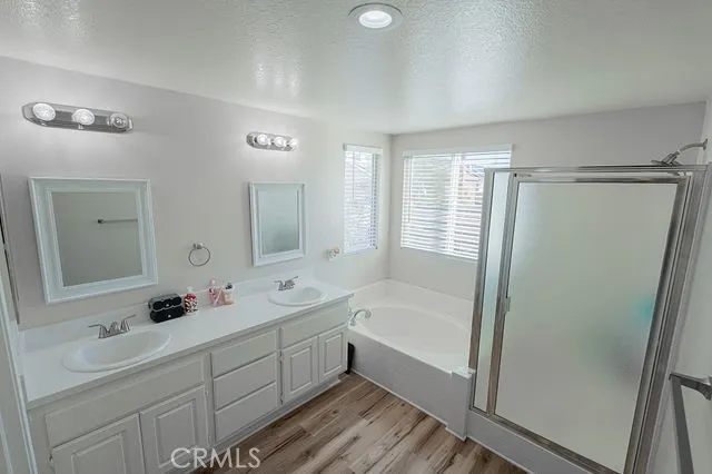The primary suite offers plush carpeting and a luxurious en-suite bathroom with double sinks, a separate shower, and a soaking tub ideal for relaxation. One bedroom with a full bathroom is conveniently located on the main floor, perfect for guests or multi-generational living.