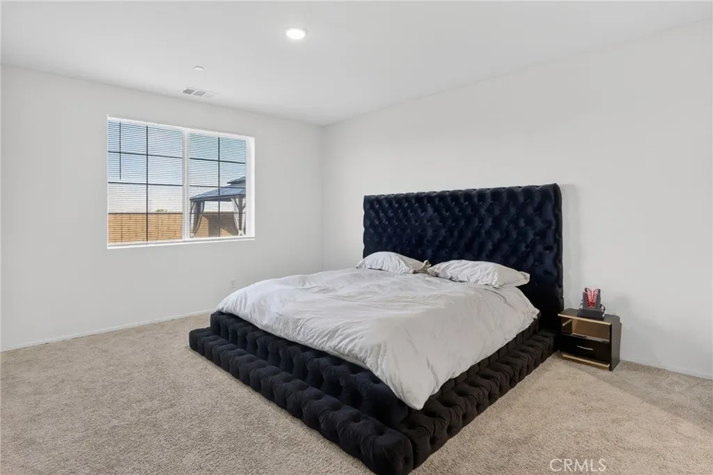 Outdoors, the backyard has been thoughtfully finished with turf and a paver walkway, creating a stylish, low-maintenance space ideal for gatherings, play, or relaxation. Solar panels enhance energy efficiency and underscore the home’s modern sensibility.