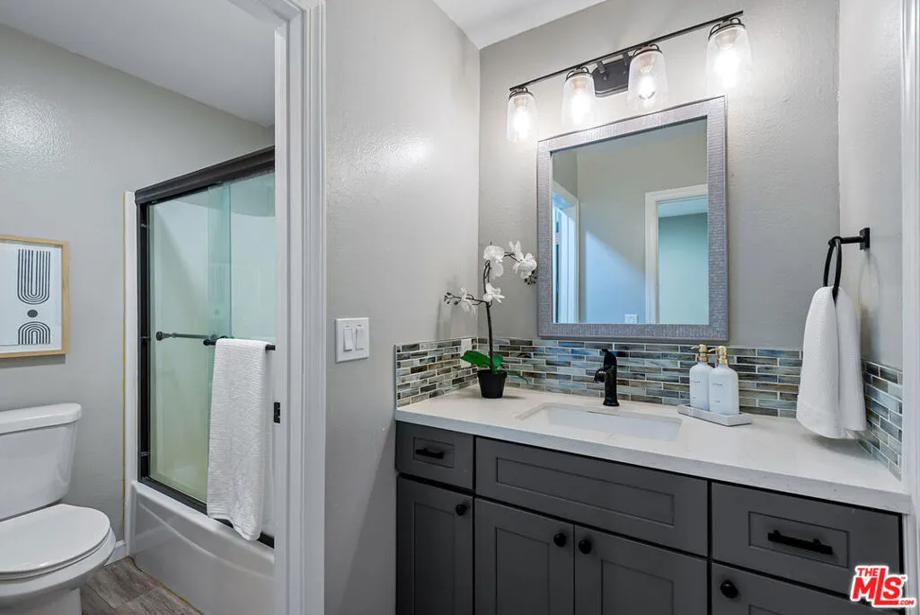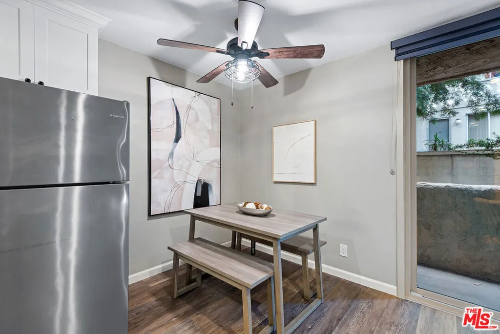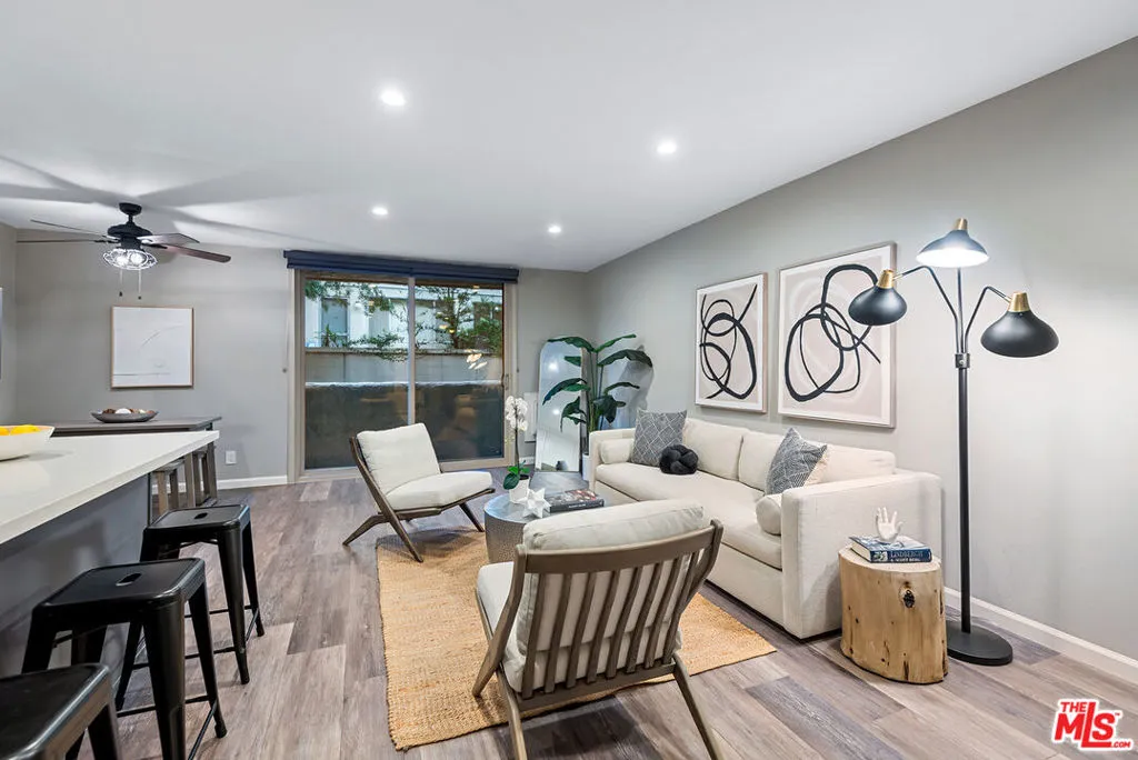 Beautifully remodeled and thoughtfully designed, this stylish Brentwood condo offers modern comfort with refined finishes throughout. The open layout maximizes nearly 600 square feet of usable living space, enhanced by wide-plank laminate flooring, contemporary recessed lighting, and a striking wood barn-style sliding door that separates the bedroom area while maintaining a seamless flow. The updated kitchen features soft-close cabinetry, quartz countertops, stainless steel appliances, a farmhouse sink, mosaic backsplash, under-cabinet lighting, and a center island. The living area includes a fireplace that serves both the living and bedroom spaces, while sliding glass doors with designer blinds open to a private balcony. Additional highlights include an ensuite bathroom with a separate vanity area, a walk-in closet, and modern fixtures throughout. Ideally positioned at the rear of the building, the unit offers a quiet, private setting with convenient access to the rear elevator. The secure community offers desirable amenities including a pool, spa, sauna, on-site laundry, and lobby security most evenings. Ideally located near Montana Ave and San Vicente Blvd, with close proximity to neighborhood favorites such as Whole Foods Market, Great White, Baltaire, La La Land, Alfred Coffee, and a wide array of dining and shopping options. A turnkey opportunity in one of Brentwood’s most desirable locations.