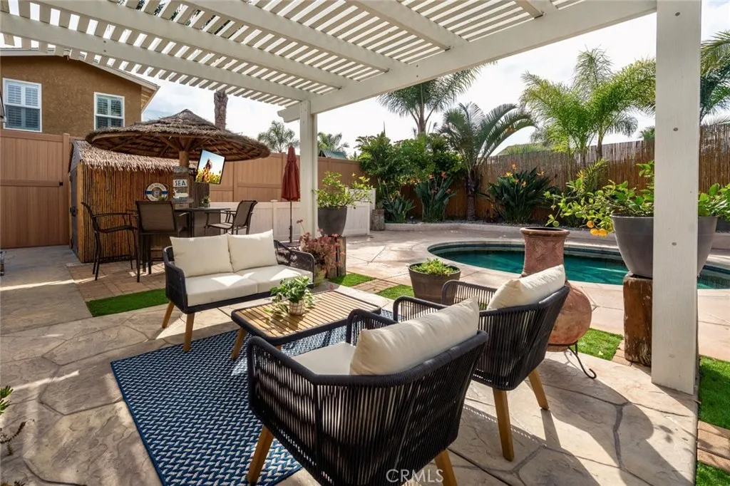 If you’ve been waiting for a Bay Ho home that truly has it all – this is it. Set on a 6,300 sqft lot designed for flexibility, the backyard feels like your own private resort. The heated saltwater pool features an innovative movable tile floor system that transitions from ground level to 6 ft deep in approximately 90 seconds and can be stopped at any depth in between. It also allows for additional flat yard space when desired and includes a built-in resistance current for exercise. Relax under the pergola lounge area or gather around the gazebo tiki bar with mounted TV.