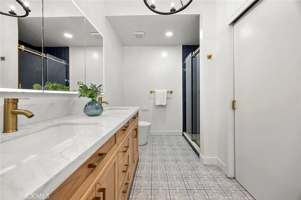 Tucked at the end of a quiet cul-de-sac in the sought-after community of Tustin Meadows, this beautifully 4-bedroom, 2-bath home welcomes you with a sense of comfort the moment you arrive. Freshly updated inside and out, nearly 1,700 square feet of thoughtfully designed living space blends modern finishes with warm, inviting touches that make a house truly feel like home. As you step inside, natural light fills the open living spaces, highlighting new flooring, recessed lighting, and fireplace with elegant stone detail — the perfect setting for gatherings with family and friends. Every surface has been thoughtfully enhanced, featuring freshly textured walls and ceilings, soft paint tones, and gorgeous designer light fixtures that create a warm and welcoming ambiance. The kitchen is designed to bring people together. Beautiful natural wood shaker cabinetry with gold accents, striking quartz countertops, a farmhouse sink, and a vibrant tile backsplash create a space that is both functional and memorable. French doors nearby allow sunlight to pour in and offer an effortless connection to the backyard, making everyday living and entertaining feel seamless. The primary bedroom offers a peaceful retreat with its own ensuite bathroom featuring dual sinks, modern finishes, and a comfortable layout, while the secondary bathroom has also been beautifully updated with stylish tile finishes and clean contemporary design to serve the additional bedrooms. Step outside and discover a spacious backyard designed for enjoying Southern California living year-round. A large grass area provides room for play or future possibilities, while the covered patio offers the perfect shaded space for outdoor dining and relaxing weekends. Mature fruit trees add charm, creating a peaceful outdoor setting you’ll appreciate every day. Thoughtful upgrades continue behind the scenes, including central air conditioning with new ductwork, EV charging capability and paid-off solar, along with numerous system improvements. Living in Tustin Meadows means enjoying neighborhood amenities. Residents enjoy private pools, expansive greenbelts, playgrounds, and a welcoming clubhouse that hosts neighborhood events throughout the year, along with beautifully maintained parks, sports courts, and scenic walking trails. Ideally positioned with convenient access to the 5, 405, and 55 freeways. Just minutes away, award-winning schools, shopping centers, dining and entertainment. This is a must see.