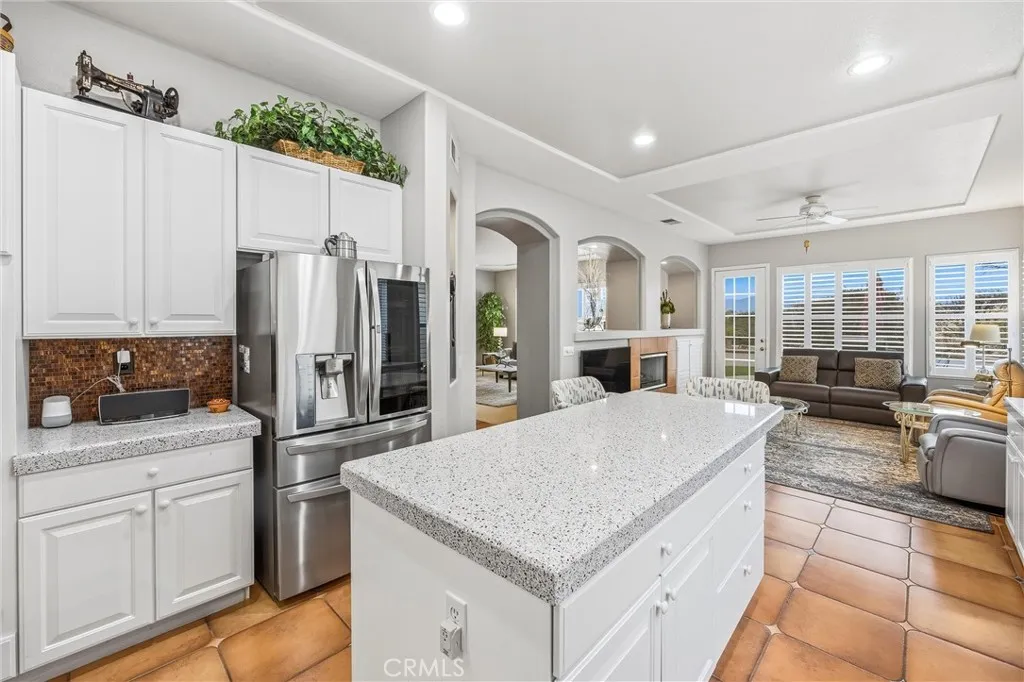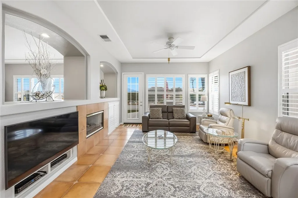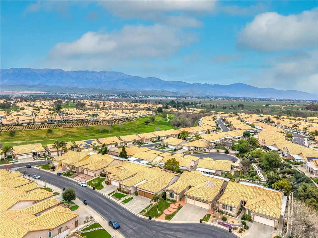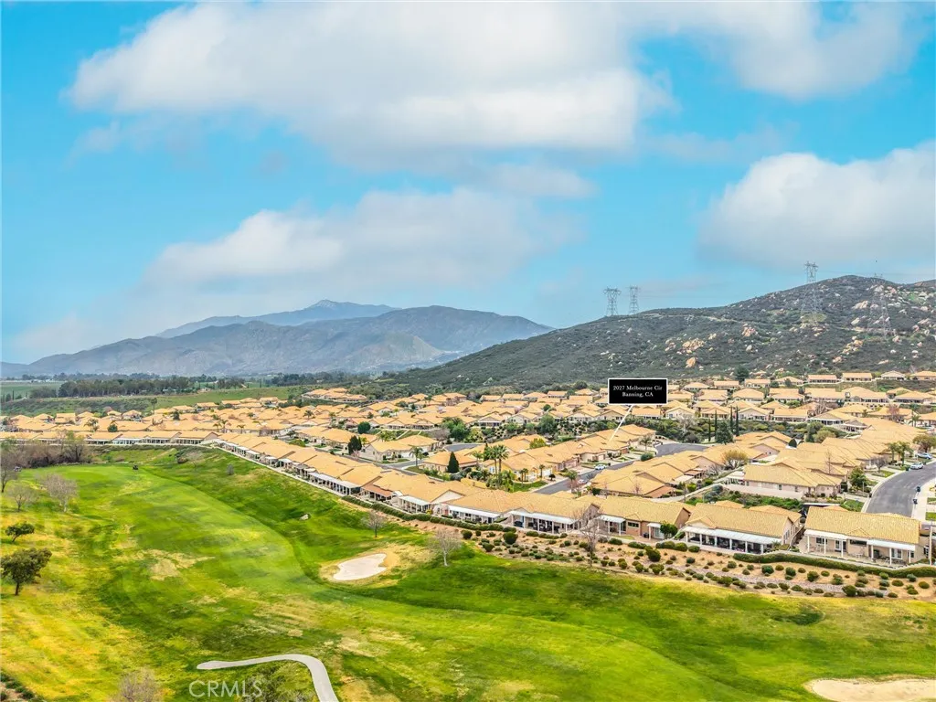 Welcome to 2027 Melbourne Circle, a beautifully maintained residence nestled in the prestigious, guard-gated 55+ Sun Lakes Country Club community. This exceptional Wisteria floor plan features 2,219 square feet of comfort, style, and thoughtfully designed living space. Step inside this 2 bedroom, 2.5 bath home and the spacious living room quickly becomes the focal point of the home with abundant natural light and views. The dining room creates an easy, open flow with plenty of room for memorable gatherings. Step inside the kitchen, where an oversized island, double ovens, and beautiful quartz countertops create both sytle and functionality. The kitchen opens to the family room, where a charming fireplace anchors a space destined to be your favorite spot for relaxing. The serene primary suite captures lovely backyard views with the majestic San Gorgonio Mountains beyond. Enjoy a full en-suite bath with double vanities and a walk-in closet enhanced by a built-in organization system. The guest bedroom and bath are conveniently situated side by side, with the bathroom featuring a newer walk-in shower designed for safety and comfort. The Wisteria also includes a versatile bonus room, ready to serve any purpose you envision. An attached three-car garage-a rare find in Sun Lakes Country Club-is designed for storage and includes a newer water heater. The impressive yard surrounding this delightful home boasts low-maintenance synthetic turf in the front and a backyard that offers stunning mountain vistas. The community benefits from access to premier amenities that include 2 golf courses, 3 swimming pools, tennis and pickleball courts, 3 clubhouses, fitness facilities, 2 restaurants, lounge, and so much more. This home offers a resort lifestyle in a serene setting, perfect for any active senior seeking a vibrant community to call home.