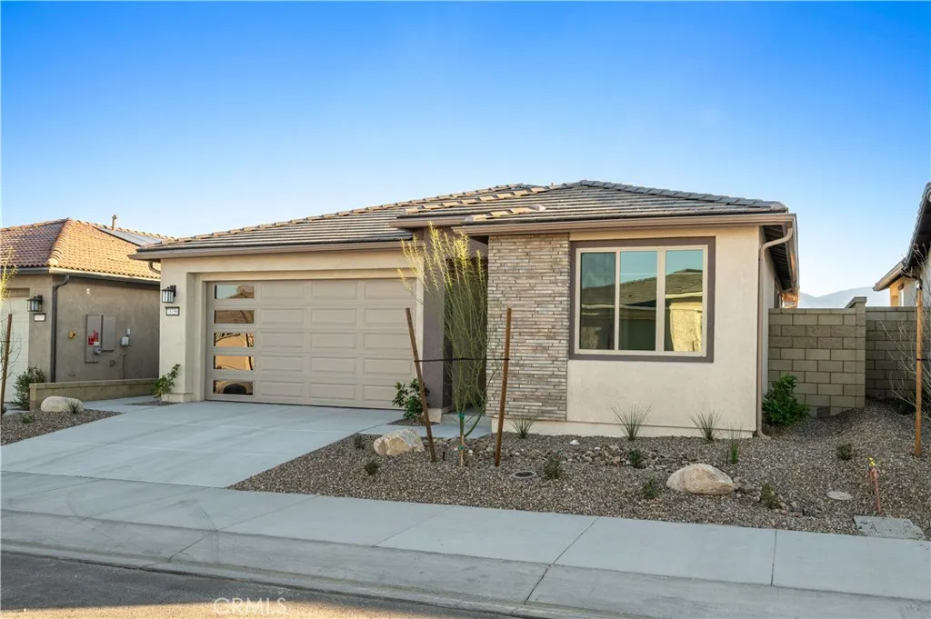 Welcome to your Brand-New Single Story Home Available Now for Lease at the New Del Webb “Explore” Development in Palm Desert. (Del Webb Explore is a NON-AGE RESTRICTED COMMUNITY). This Beautiful Home has Two Bedrooms along with an additional Flex Room that would be perfect for use as an Office or Den. There are Two Full Bathrooms. The Flooring is a tasteful light Luxury Vinyl Plank along with carpeting in the bedrooms. This Home is the Builder’s “Bayley Model” that the Builder has staged for viewing. The Kitchen is upgraded with KitchenAid Appliances and has upgraded quartz counter tops and kitchen island. The Community Clubhouse Amenities are under construction and will include a Swimming Pool, Gym and Three Pickleball Courts. You will love the Palm Tree Lined Streets, especially on Julie Lane. There are and will be additional Walking Trails within the community. Palm Desert is ideally located near Restaurants and Shopping Opportunities. This Home has Owner Purchased Solar Panels AND a Tesla Battery System for the opportunity of Lower Utility Bills. Come and see your New Rental Opportunity!