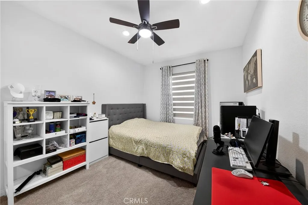 Welcome to this like-new rare to find single-level home located in the highly desirable Ontario Ranch community. Built in 2022, this modern residence offers 3 bedrooms/ ceiling fan/mirrored closet doors and 2 full bathrooms.This home features a bright, open-concept layout flowing into a gourmet kitchen with a center island, quartz countertops, and stainless steel appliances. The primary suite includes a walk-in closet /built in closet organizer and an en-suite bathroom. Upgrades include recessed lighting, dual-pane windows, energy-efficient fixtures, and a smart thermostat. Also one of the highlights is the paid off solar energy system. The backyard is low-maintenance and perfect for relaxation or entertaining. Don’t miss the opportunity to own this energy-efficient, move-in-ready home in one of Ontario’s most attractive neighborhoods.Easy to access to the Freeway/close to the shopping centers and schools.