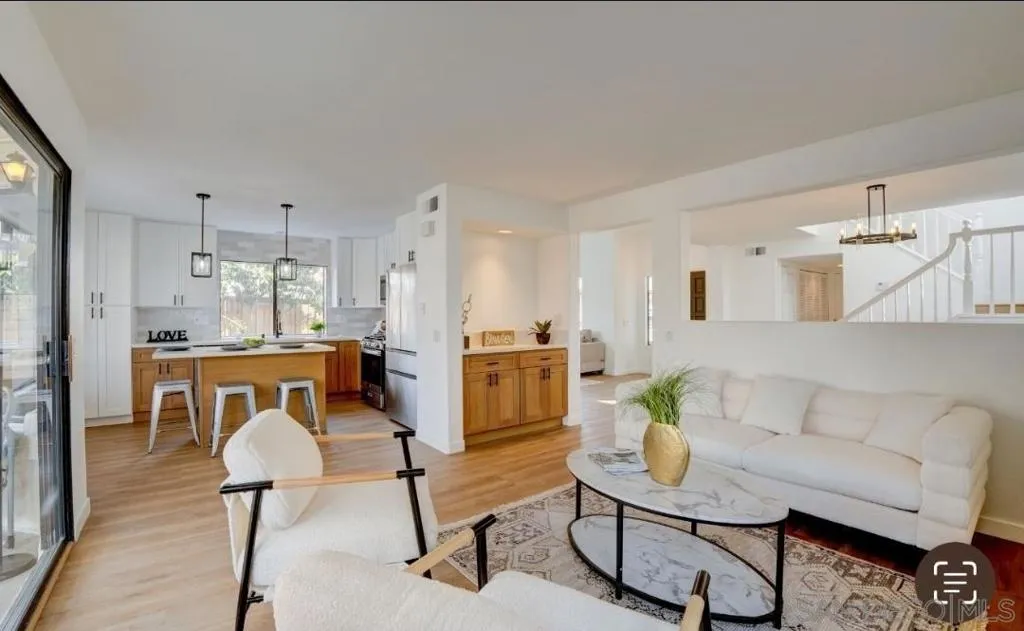 This totally transformed home is now available in San Diego’s most convenient, thriving, and desirable neighborhoods, Mira Mesa. Inside, a beautifully modernized interior welcomes you with soaring vaulted ceilings, expansive windows and an abundance of warm natural light flowing throughout the entire home. Appealing light-tone wood flooring, newly painted walls, piano black colored hardware, and 2 stylish fireplaces create a comfortable and inviting living space. The entirely remodeled kitchen showcases soft-close cabinetry, stainless appliances, gas range, farmhouse sink, stunning cabinets, striking backsplash and a generous island which open to the family room. Updated baths, fresh paint, an elegant staircase, and 2 main living spaces are more highlights of this home. Furthermore, a spacious primary suite with vaulted ceilings, 2 closets (1 walk-in), and in the bathroom, dual sinks and a stunning custom shower (a must see). Private backyard retreat with covered patio, fruit trees and storage shed. Don’t forget a brand new highly efficient A/C unit. This modernized home is located approx. 8 miles from the beach and bordered by Sorrento Valley, Carmel Valley and Scripps Ranch. This remodeled home is closely surrounded by colleges, major tech employers, dining and everyday conveniences. Highlights: – 4 bedrooms / 2.5 baths (with 2 car garage and large driveway) – Fresh interior & exterior paint (staircase, cabinets, eaves, boundary walls too) – Vaulted ceilings in living room & primary suite (over 12ft) – Bright, open layout with separate family & living homes! – Wet bar located off the family room – Lots of storage to be utilized – NEWER than most Mira Mesa homes (this home was built in the 90’s not the 70’s) – Expansive front yard with RV, playground, garden, or ADU potential – Prime location close to schools, dining, shopping & major employers. Mira Mesa West/Sorrento Valley – a community known for its great schools, local charm, and unbeatable convenience.