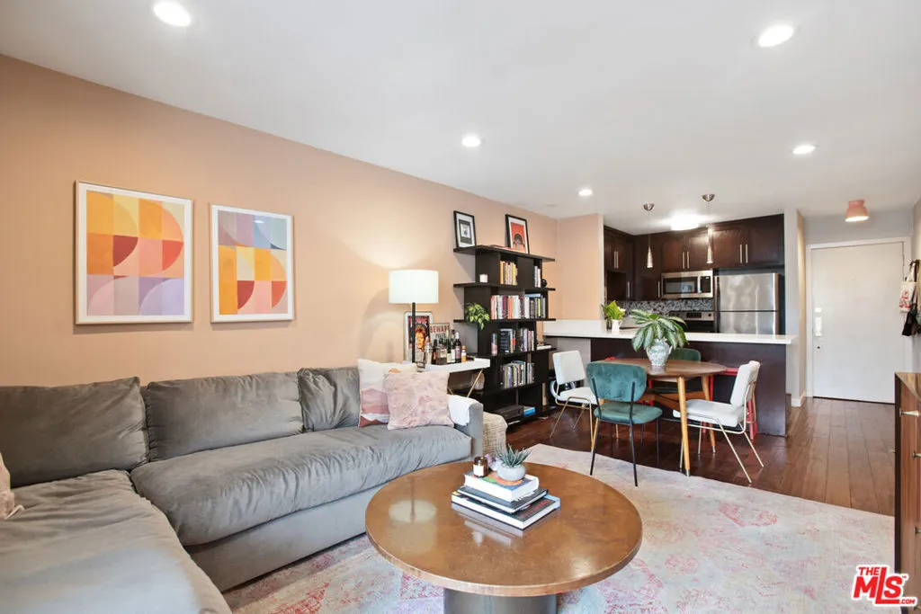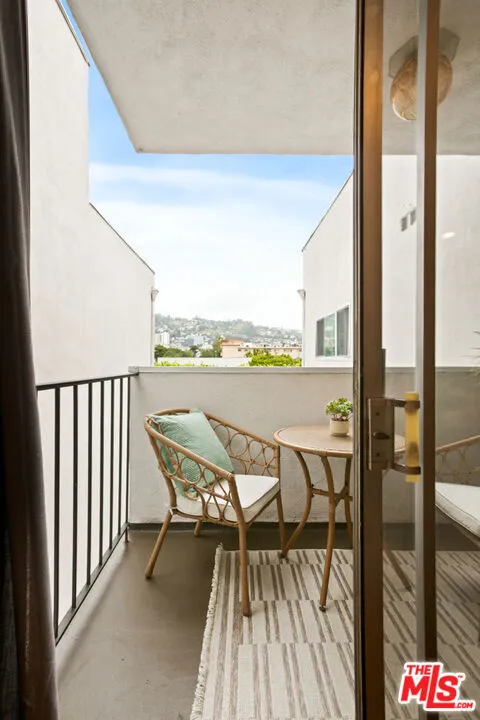 Welcome to your chic top-floor WeHo hideaway. Perched above it all, in one of the most walkable neighborhoods, this updated residence offers effortless living just moments from Melrose Place and the best of WeHo. Bathed in natural light, this Pied-a-Terre features thoughtful updates, curated and smart space design and sweeping views of the Hollywood Hills that elevate everyday living. The layout lives larger than its footprint, with an airy flow and a sense of privacy only a top-floor position can provide. Warm and inviting space with recessed lighting and hardwood floors. A bright private outdoor patio with views of the hills extends your living space outdoors effortlessly and begs for lazy Sundays with coffee on the deck. Updated kitchen with large island and breakfast bar. Chic updated bath and closets galore allow efficiency and utilizing all of its space. A roomy bedroom with sisal flooring and custom wallpaper tempts you to simply stay in and be cozy. Low HOAs and the recently updated building adds further appeal, while the location places you steps from world-class shopping, dining, and coffee in the heart of prime WeHo and the pinnacle of pedestrian lifestyle. A rare opportunity to own a refined retreat in one of Los Angeles’ most iconic neighborhoods including Melrose Place, Alfred Coffee, Craig’s, Catch, Melrose Design District. Get ready, all the best nights out will start here…