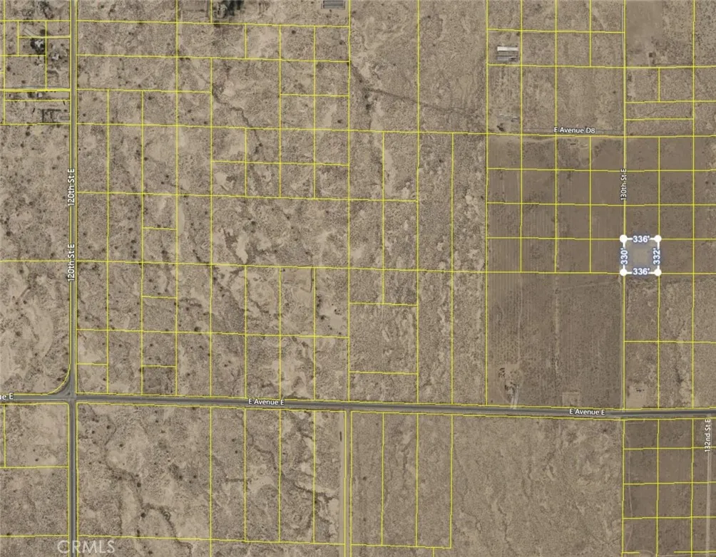 Great land parcel with frontage on 130th St E. It’s just north of paved Avenue E. There are power lines running along Avenue E. Avenue E is a major street that can take you to Sierra Hwy or the 14 Freeway. Just to the north of this property, at 120th St and Ave B, is the entrance of Edwards AFB. There are a number of homes and ranches in the area. This property provides a great opportunity to own a land parcel with street frontage, very close to a paved street that has power lines, for a very low price. This may be a great location to camp, go off-roading, install a mobile home, build a house, or start a small farm. This property is secluded while also being accessible. Great opportunity, don’t miss out!