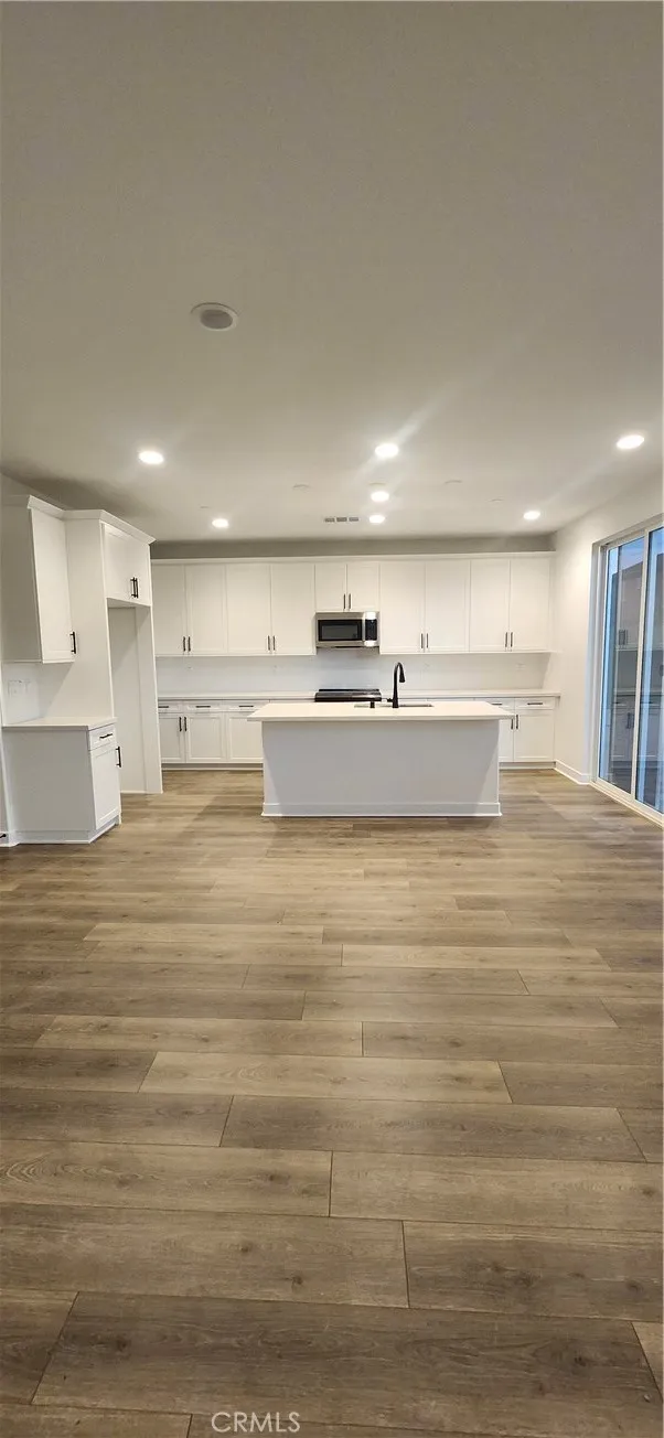and bathroom; a thoughtfully designed kitchen offering quartz countertops, white cabinets, a center island