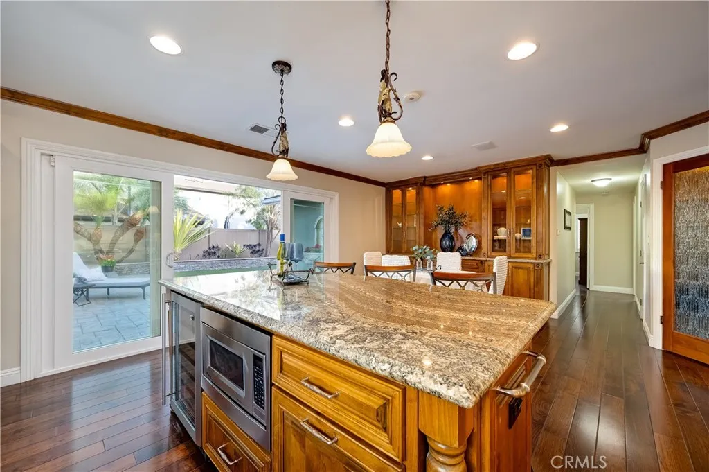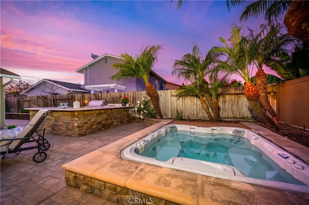 Beautiful single-story home in the highly sought-after Landmark community of South Huntington Beach—just minutes from the sand. This thoughtfully designed 4-bedroom, 2-bath residence offers effortless coastal living, with one bedroom currently configured as a private home office featuring custom built-in desk and cabinetry—perfect for today’s remote or hybrid lifestyle. Interior highlights include hardwood flooring, dual-pane windows, plantation shutters, recessed lighting throughout, custom built-ins, and fresh interior and exterior paint. A tankless water heater adds modern efficiency and convenience. The gourmet kitchen is designed for both everyday living and entertaining, showcasing a charming garden window and stainless steel appliances, including a 4-burner gas cooktop with center grill/griddle, double ovens, newer Bosch dishwasher, double-door refrigerator, built-in microwave, and wine cooler. The spacious, low-maintenance backyard is an entertainer’s dream, featuring an in-ground spa and a fully equipped built-in BBQ island with refrigerator, sink, and side burner—ideal for enjoying Southern California evenings. Additional features include an attached two-car garage with epoxy flooring, abundant storage, and washer/dryer hookups. Washer, dryer, and refrigerator are included. Ideally located near parks, shopping, dining, award-winning schools, and Huntington Beach’s world-famous coastline, this home offers the perfect blend of comfort, style, and location.